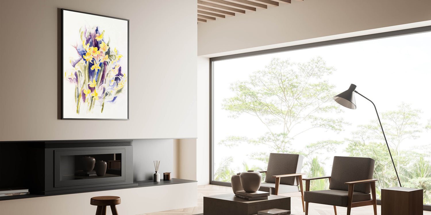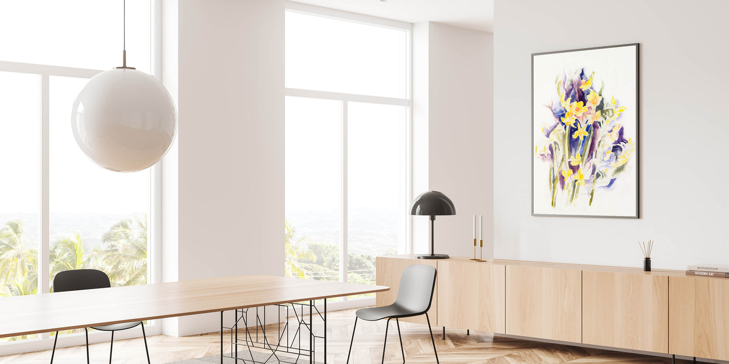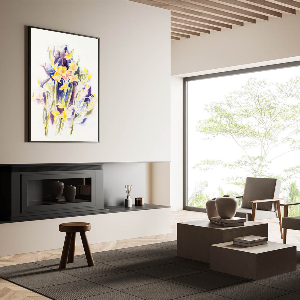 Modern Floral Wall Art - Watercolor Daffodils in Yellow & Purple