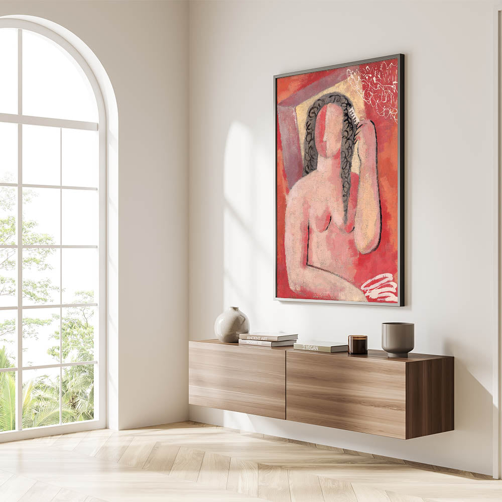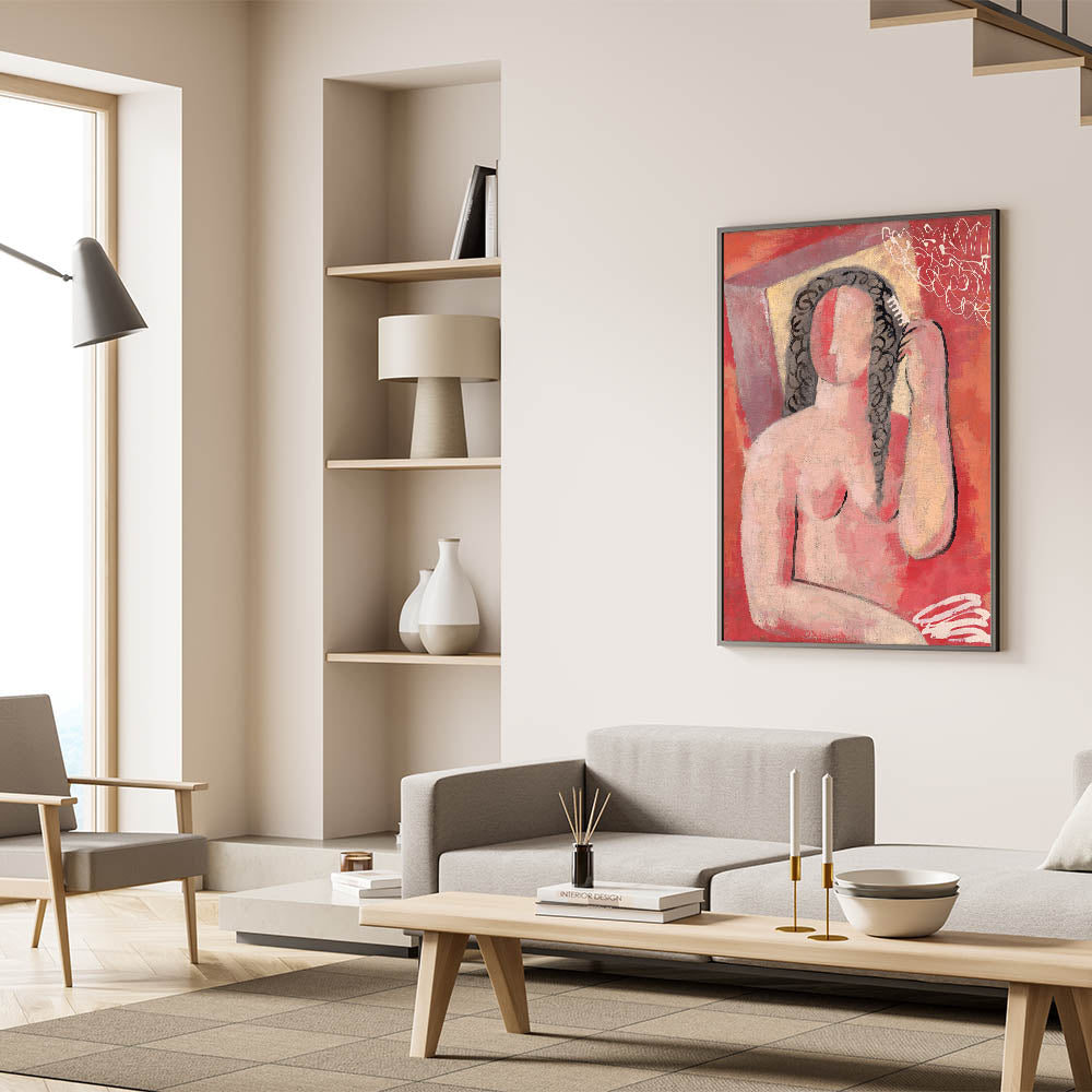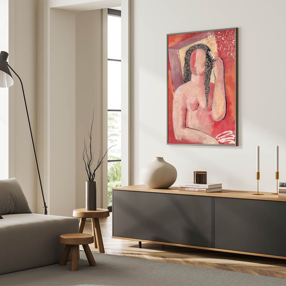 Modern Wall Art - Abstract Grooming Portrait in Warm Minimalist Style
