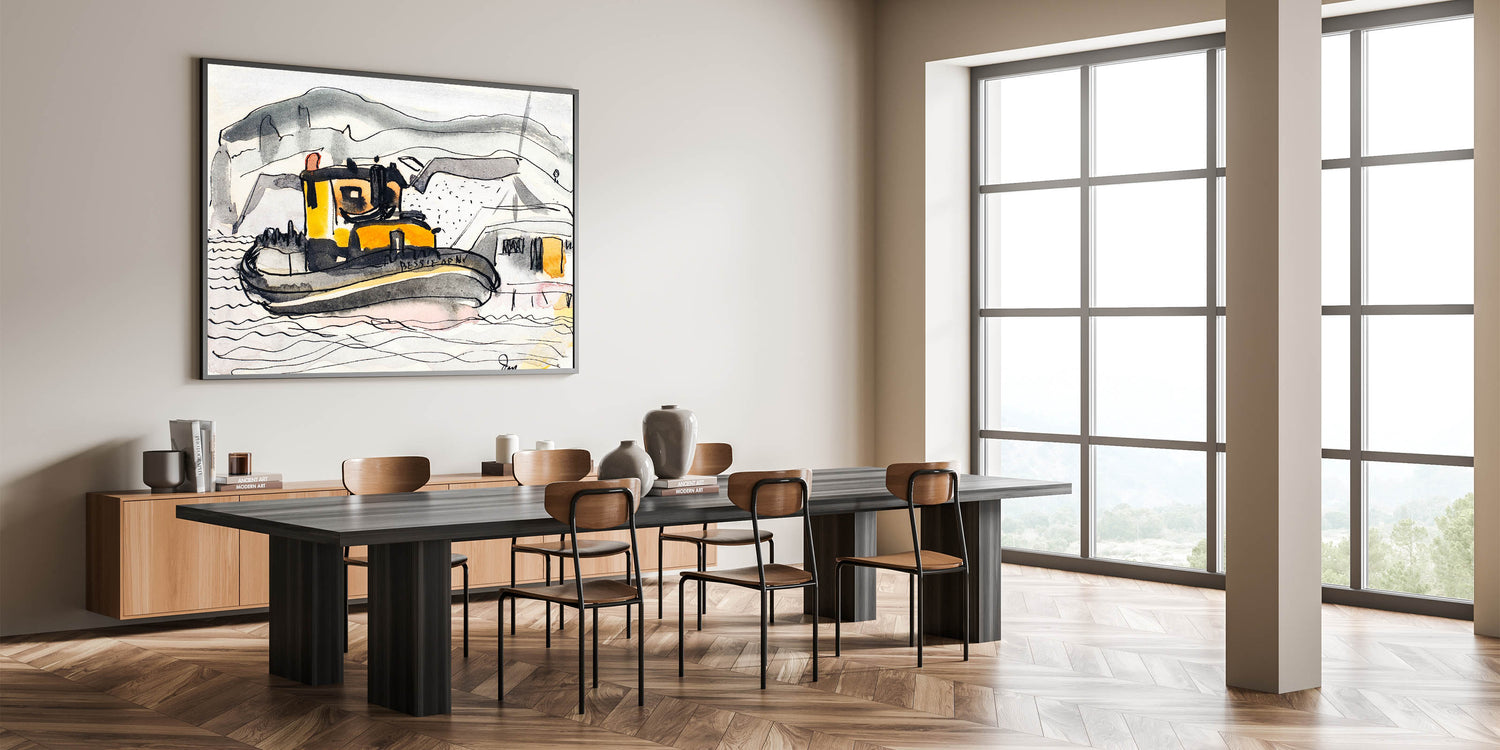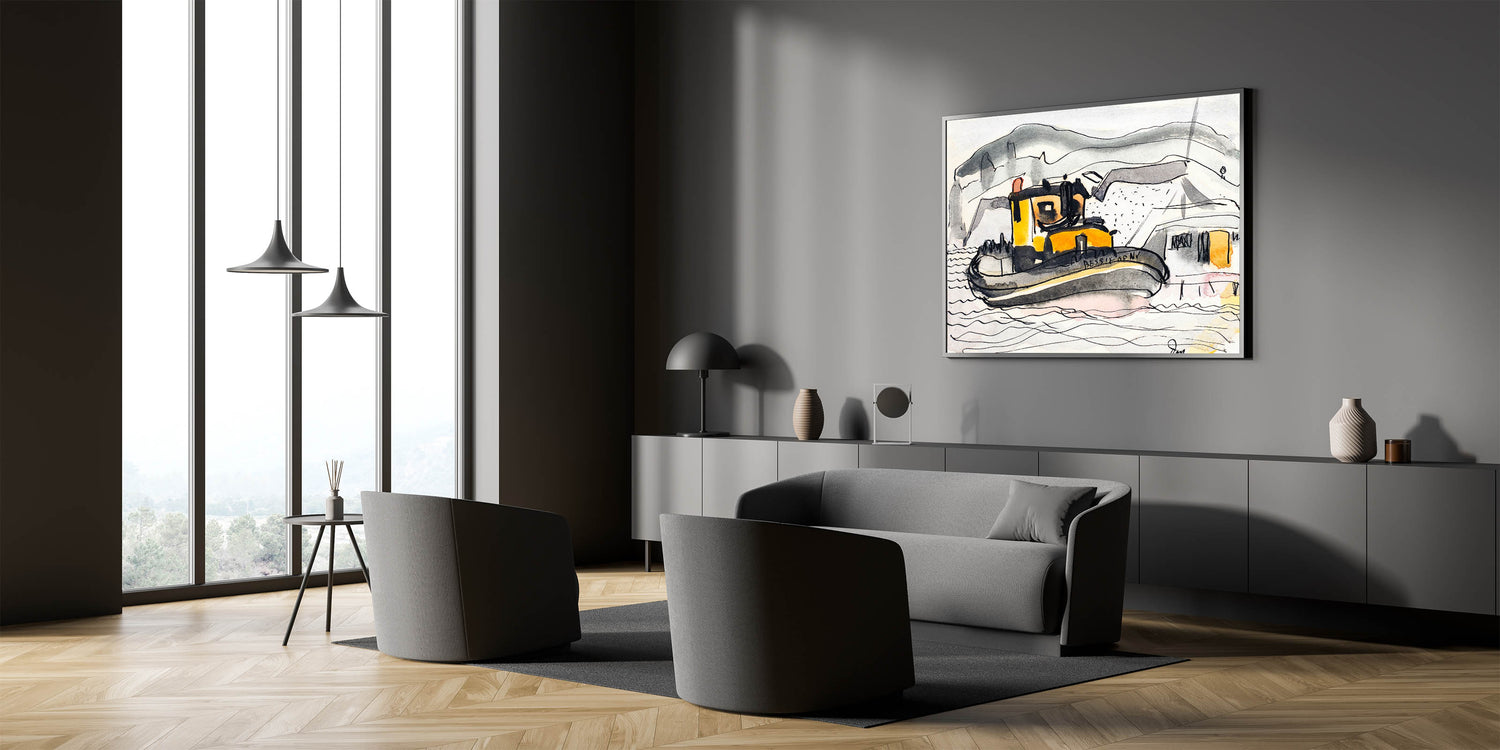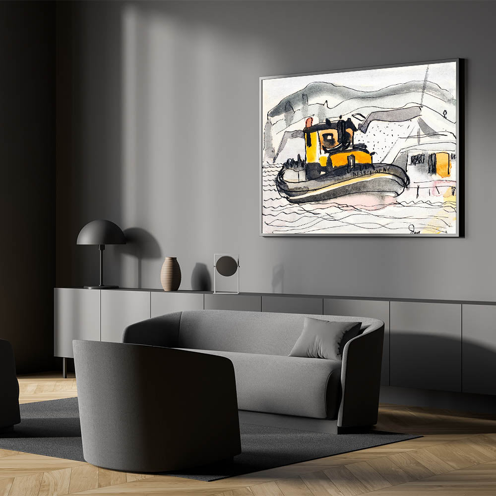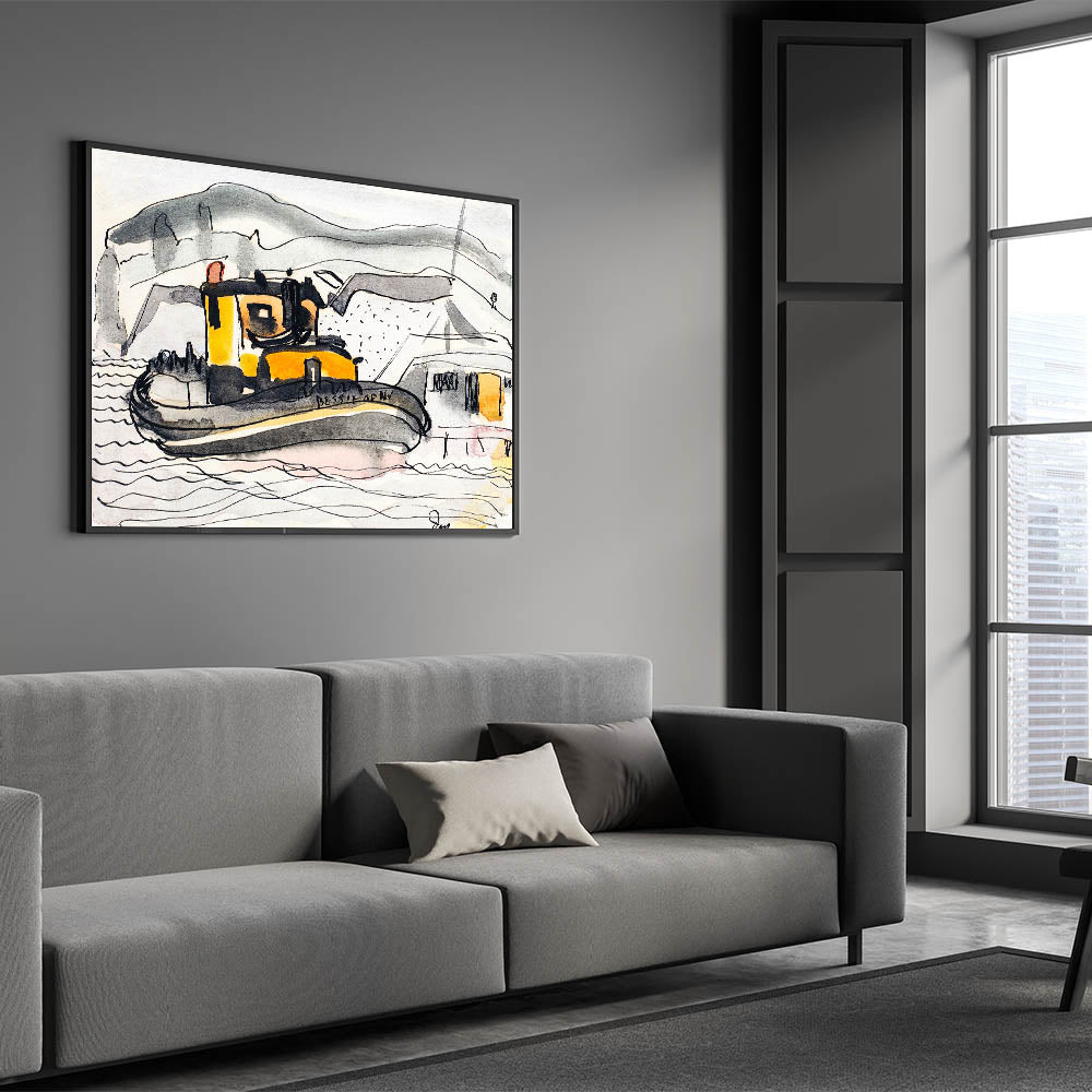 Modern Wall Art - Abstract Maritime Study with Yellow Tugboat