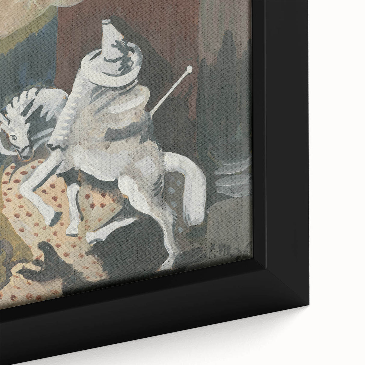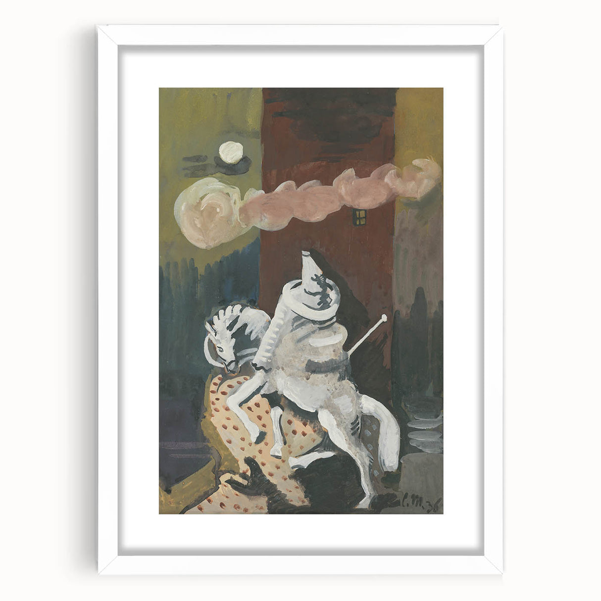 Immerse yourself in the intrigue of Modern Wall Art with At Night, a dreamlike painting by Cyprián Majerník. This evocative piece captures a knight astride a white horse, set against a surreal nocturnal landscape with muted greens, browns, and delicate moonlight. Its blend of mystery and symbolism makes it a striking addition to trendy home decor.