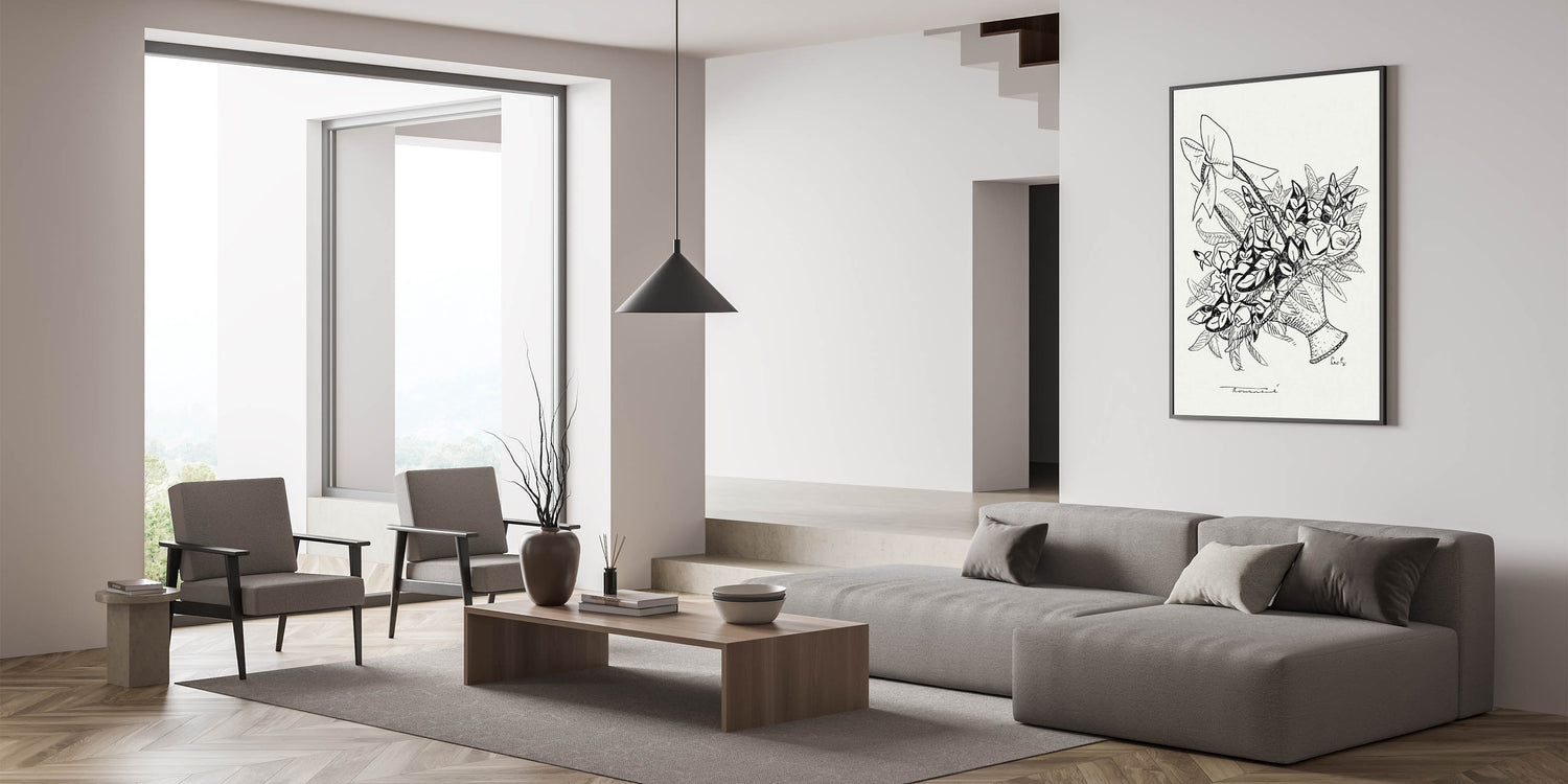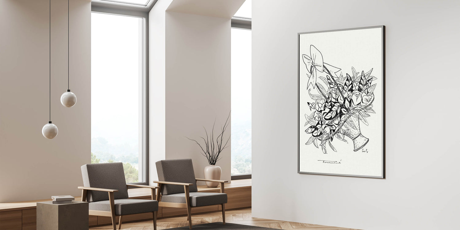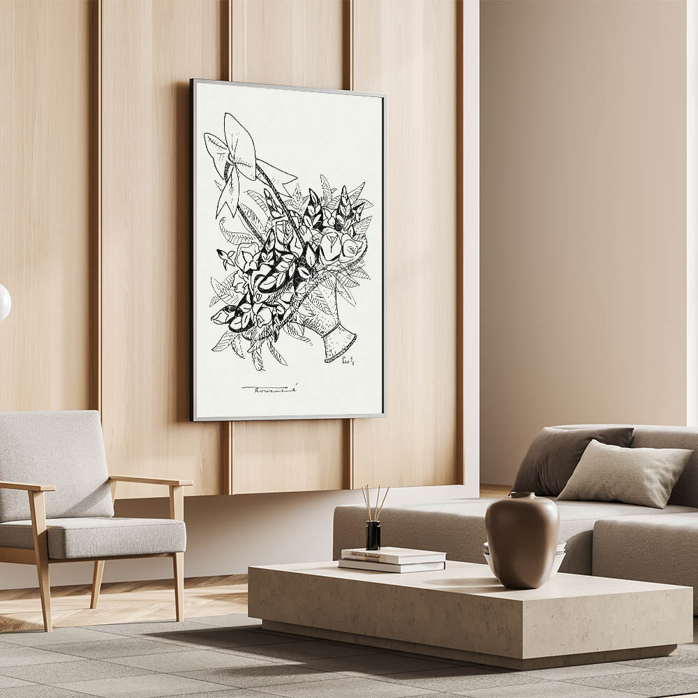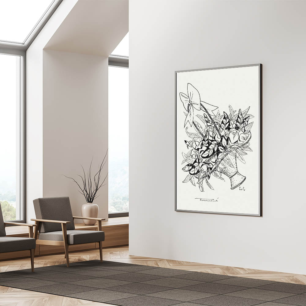 Celebrate the beauty of simplicity with the "Basket of Flowers" Modern Wall Art. This minimalist monochrome piece, inspired by Leo Gestel, features intricate black-and-white linework that captures the timeless charm of a floral arrangement. Its clean and elegant design is perfect for those who love minimalist modern decor and appreciate the subtleties of artistic expression.