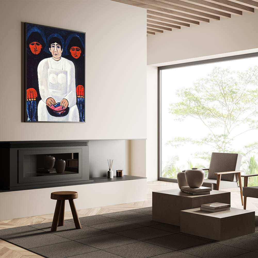 Modern Wall Art: Bold Contemporary Portrait with Red and Blue Tones