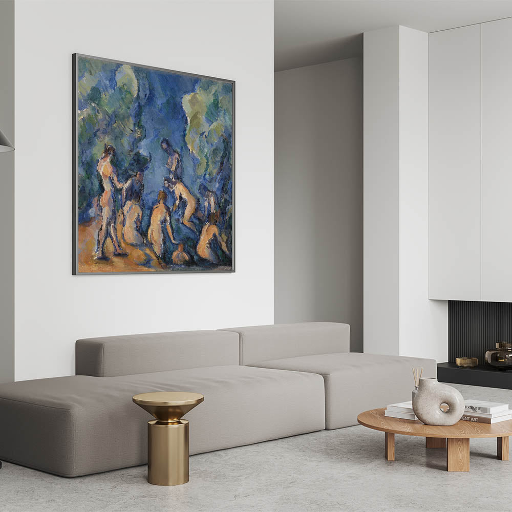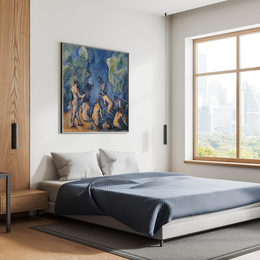 Immerse your space in the timeless elegance of Modern Wall Art with Cézanne’s iconic "Bathers." This artwork blends fluid brushstrokes and a serene palette of blues and greens, evoking a tranquil yet dynamic scene of figures in nature. Perfect for art enthusiasts and those seeking stylish wall art with historical depth.