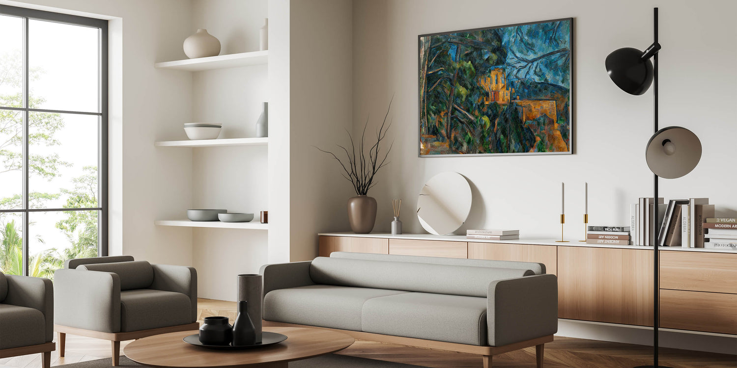 This unique modern art piece bridges the gap between tradition and innovation, adding depth and character to any space. Its rich color palette and textured brushwork make it a versatile addition to trendy home decor or more traditional interiors. Let this stylish wall art bring Cézanne’s captivating vision of Château Noir to life in your home.