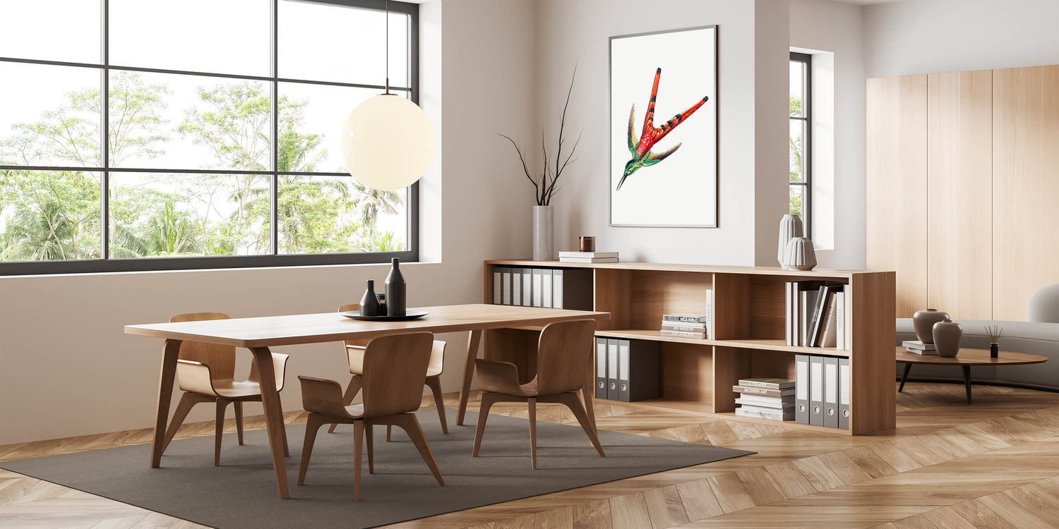 Whether hung in a living room, bedroom, or office, this modern art print adds a sense of joy and liveliness to your decor. Let the trendy home decor appeal of this hummingbird bring nature’s elegance indoors.