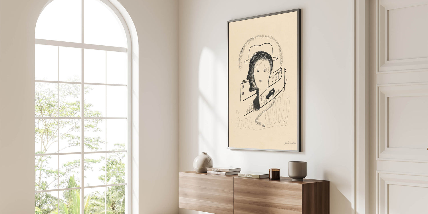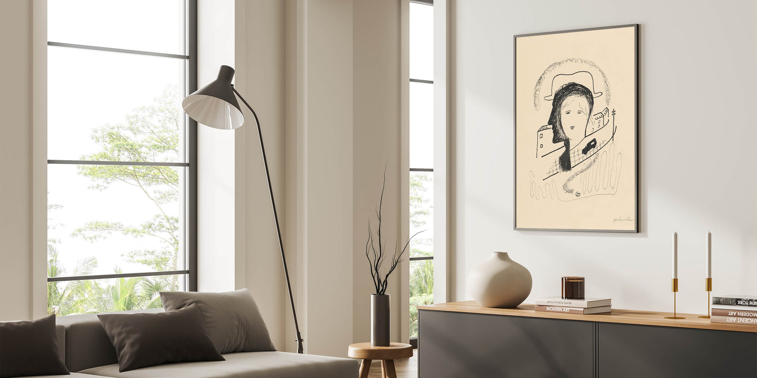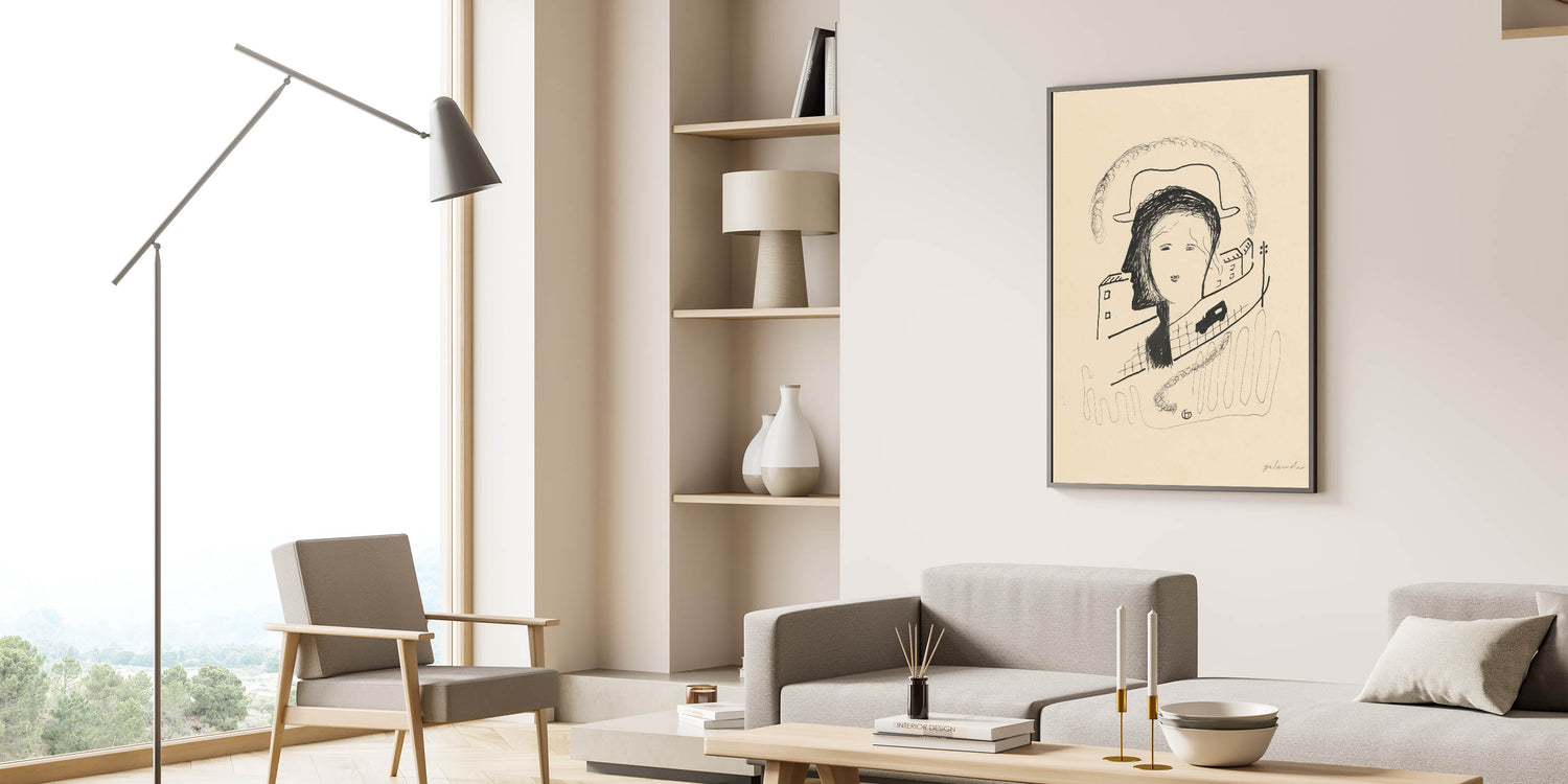 The subtle interplay of abstract shapes and soft lines in this artwork creates a calming yet thought-provoking focal point. Its understated beauty makes it a versatile addition to any space, whether displayed individually or as part of a gallery wall. This unique modern art piece celebrates the elegance of simplicity and human connection.