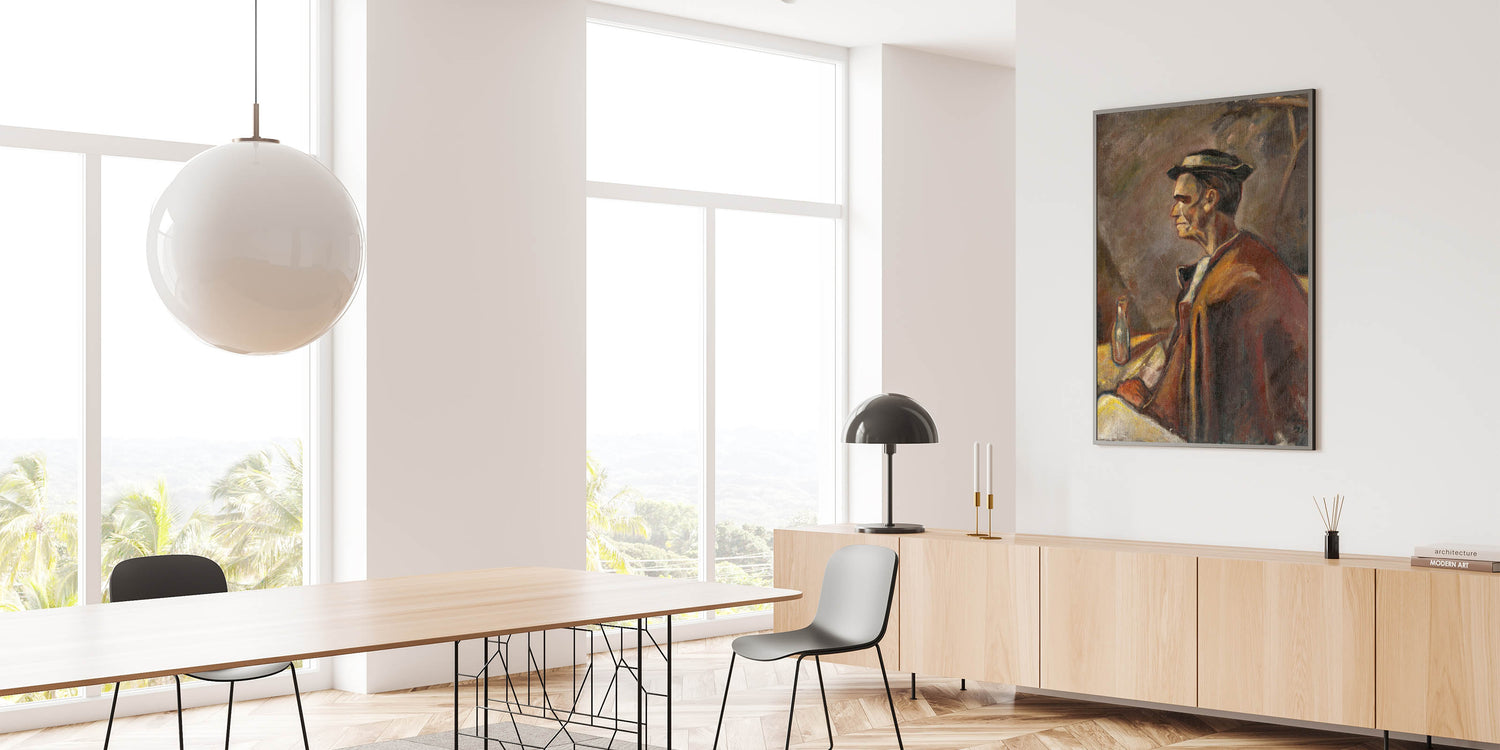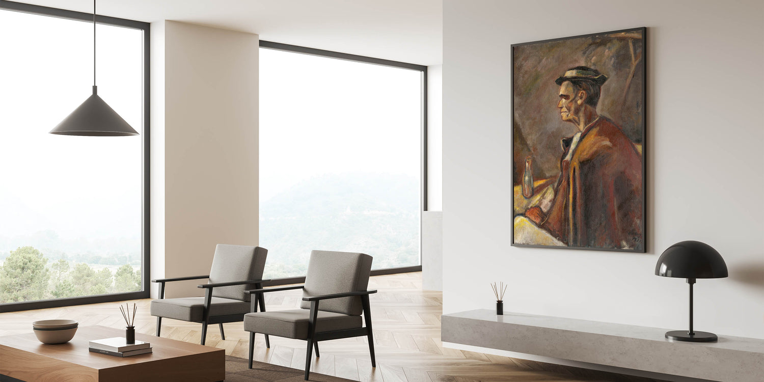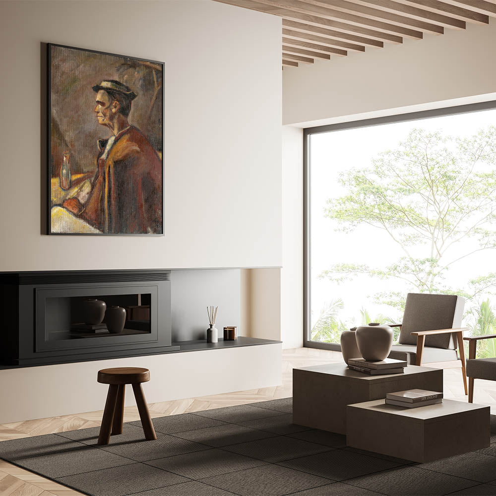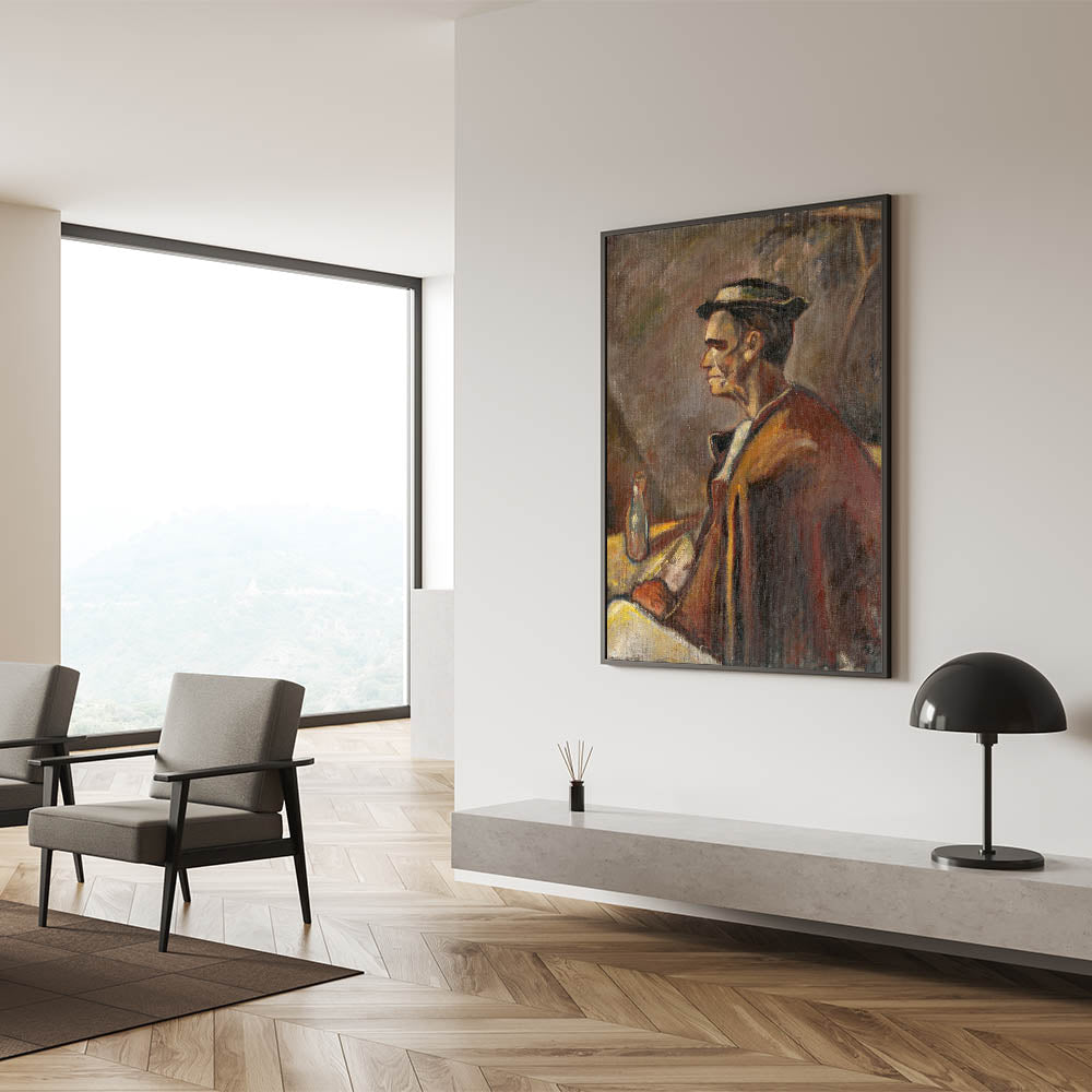 Add depth and character to your space with Modern Wall Art, featuring Drinking Spirits by Zolo Palugyay. This evocative portrait captures a moment of quiet reflection, blending warm earth tones and soft textures to create a deeply personal and introspective scene. Perfect for lovers of unique modern art, this piece brings a rustic, timeless charm to trendy home decor.