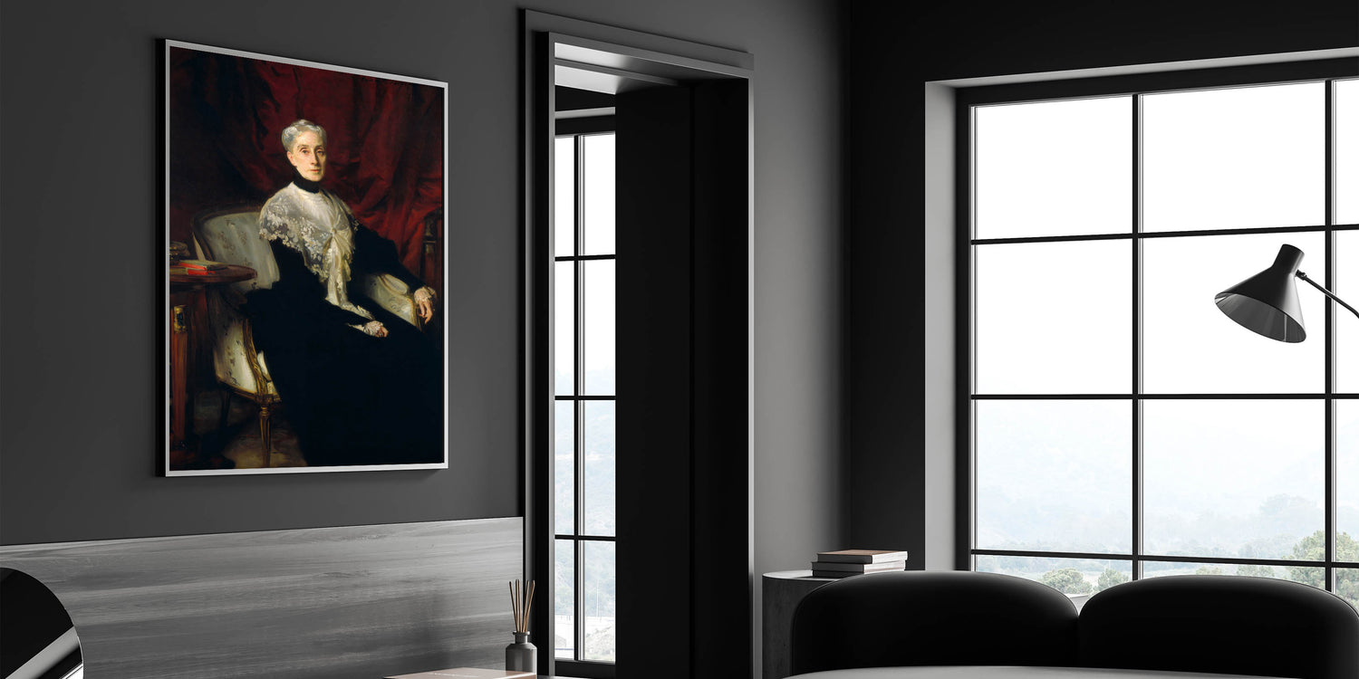 Whether hung in a living room, office, or gallery, "Ellen Peabody Endicott" is a statement piece that brings historical charm and artistic finesse to your decor. This artwork is perfect for those who value unique modern art and the timeless beauty of portraiture.