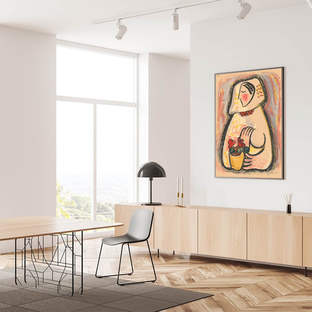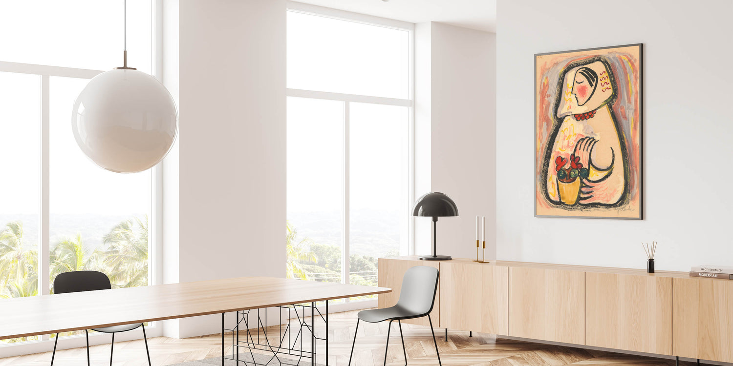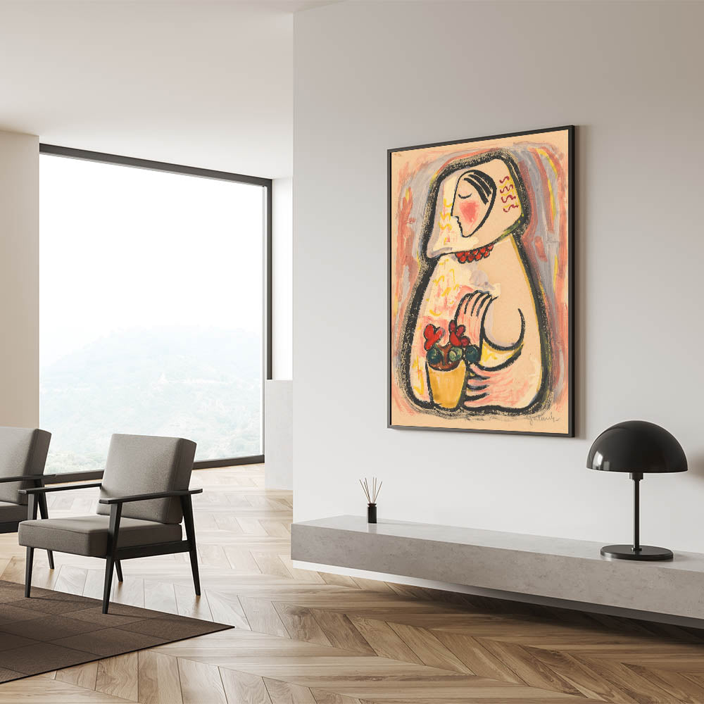 Modern Wall Art - Girl with a Basket of Flowers Print