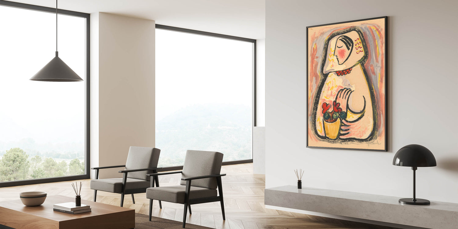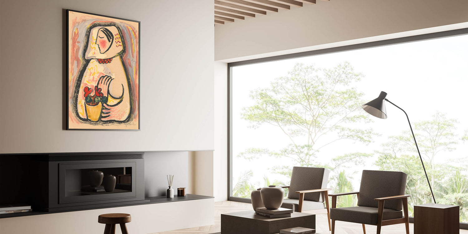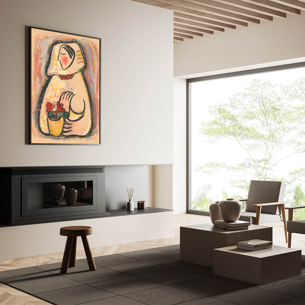 Modern Wall Art - Girl with a Basket of Flowers Print