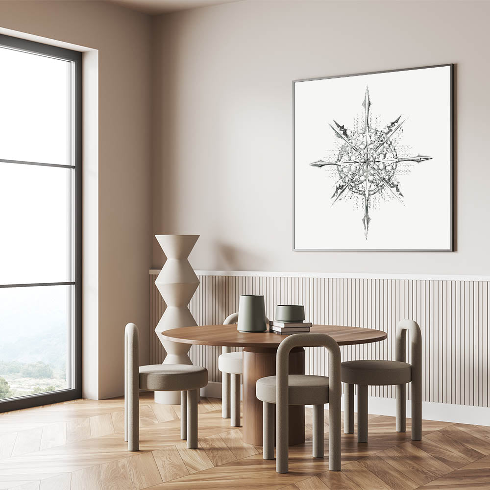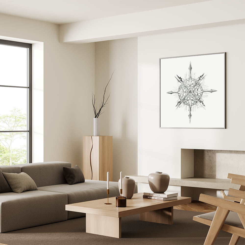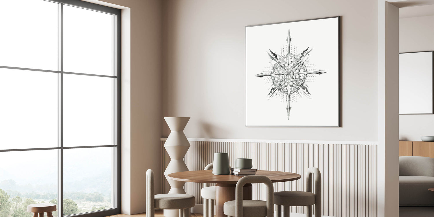 Add a touch of elegance to your space with this Modern Wall Art, featuring an intricate vintage marine life illustration on a pristine white background. This artwork combines precise detailing and symmetrical beauty, evoking a sense of timeless sophistication. Perfect for lovers of unique modern art and minimalistic design, this piece makes a striking addition to any interior.