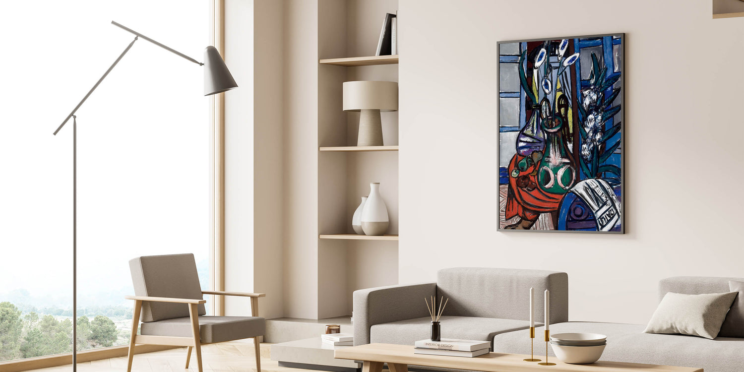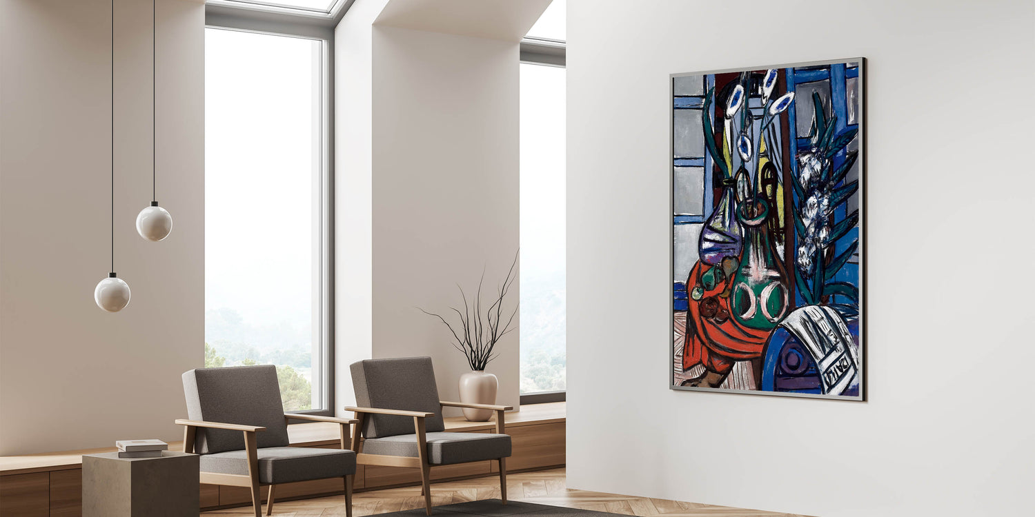 Modern Wall Art - Large Still Life Interior (Blue) by Max Beckmann