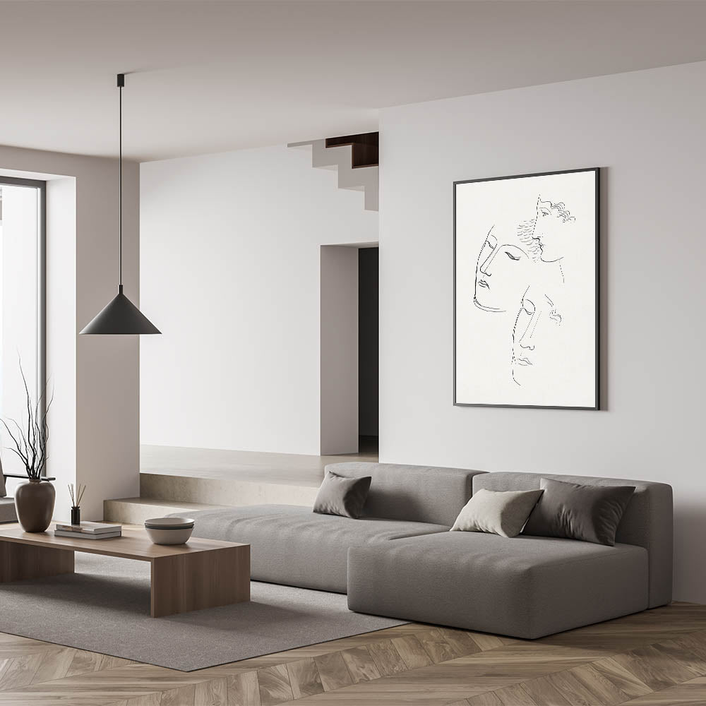 Introduce timeless sophistication to your decor with the "Minimalist Sketch of Women" Modern Wall Art. Inspired by Mikuláš Galanda’s 1930 illustration, this artwork features elegant, flowing linework that portrays the delicate contours of three female faces. The minimalist design evokes serenity and grace, making it a perfect choice for modern design enthusiasts.