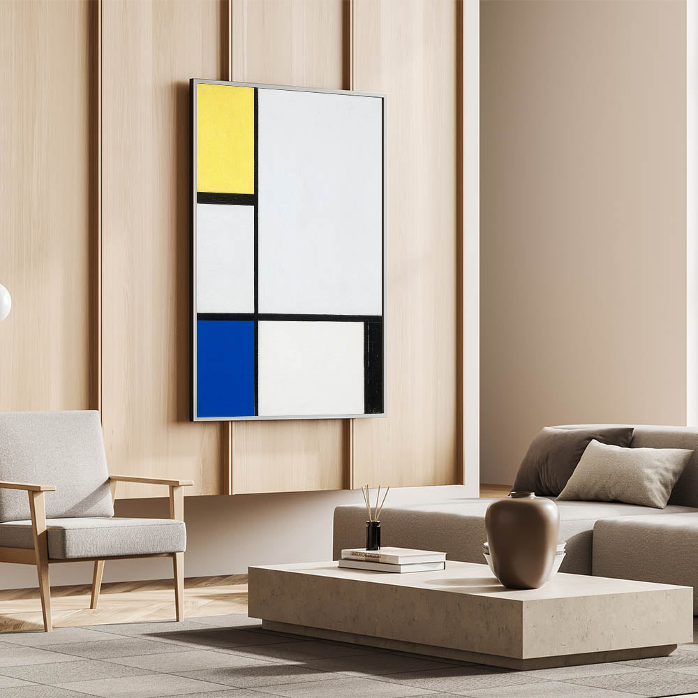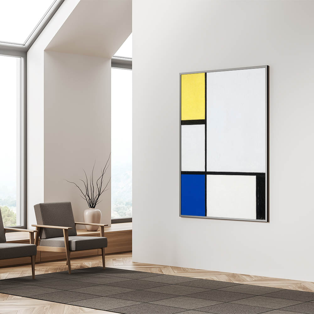 Bring bold simplicity to your space with Modern Wall Art, featuring Piet Mondrian’s "Composition with Yellow, Blue, and Black." This iconic piece showcases Mondrian’s signature geometric style with vibrant blocks of yellow and blue balanced by stark black lines, creating a timeless and sophisticated aesthetic. Perfect for lovers of abstract modern art and minimalist interiors, this artwork is both visually striking and versatile.