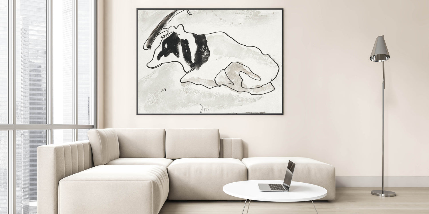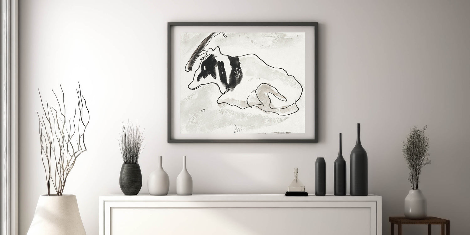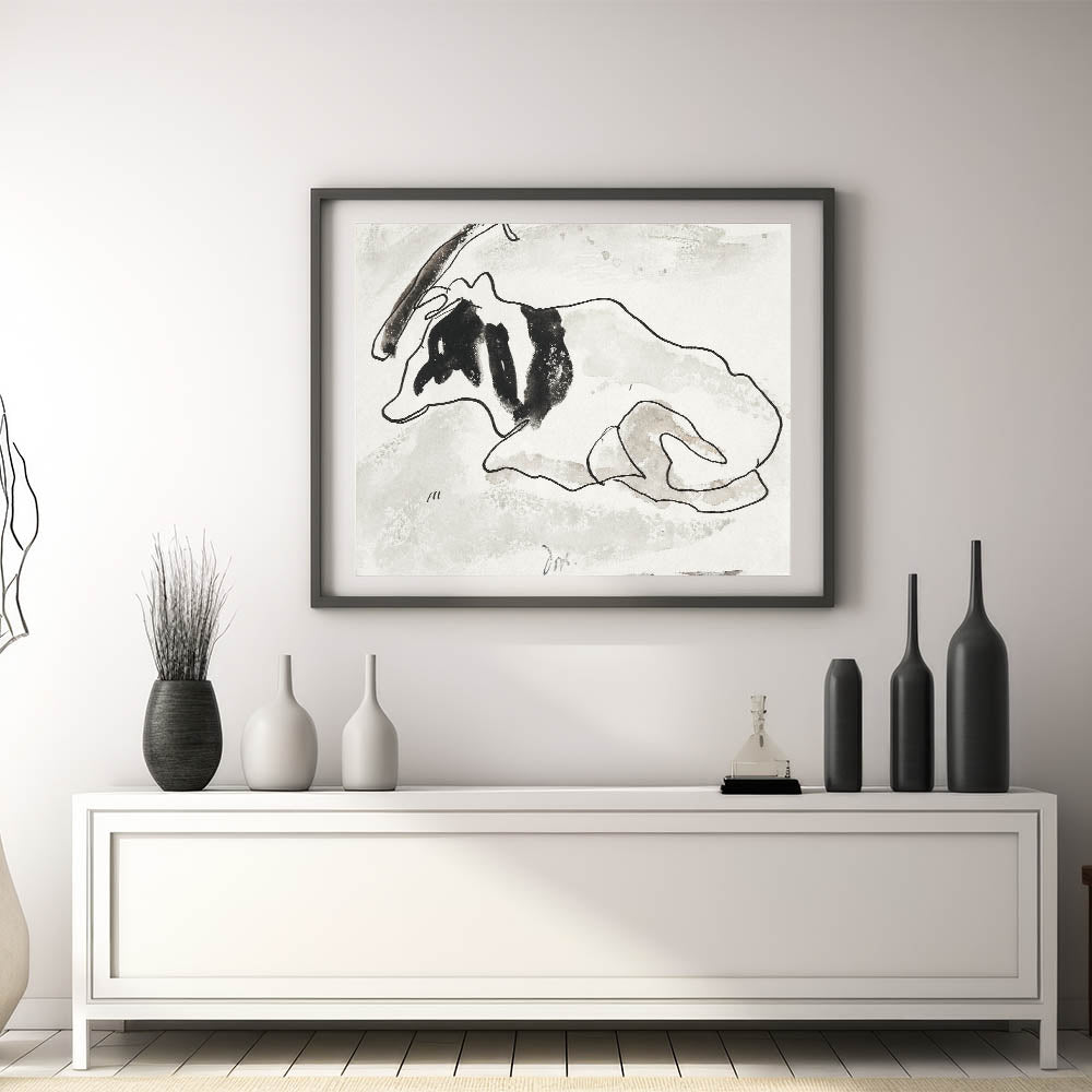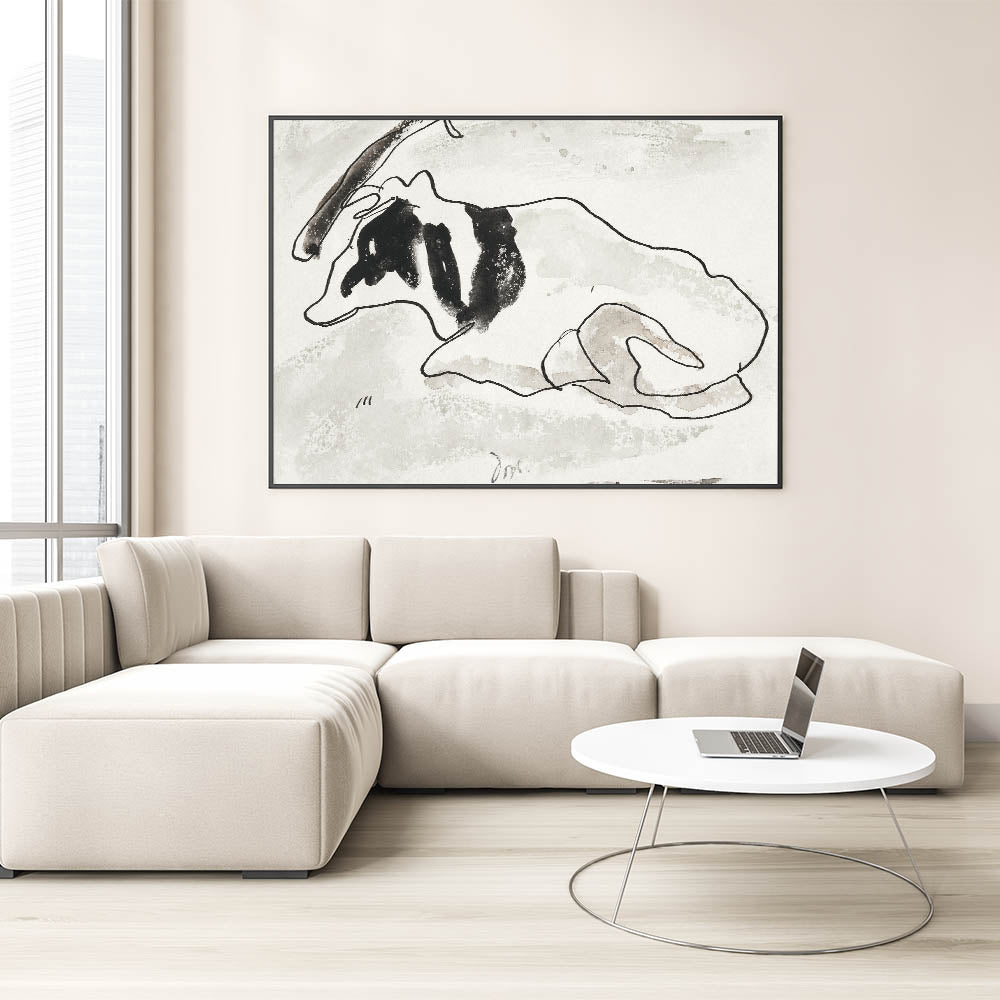 Add a touch of simplicity and charm to your decor with this unique Modern Wall Art piece. Featuring an abstract illustration of a cow, this artwork is a stunning example of minimalist modern design. The monochromatic palette and fluid lines emphasize elegance and simplicity, making it a perfect fit for contemporary spaces.