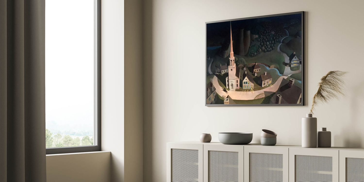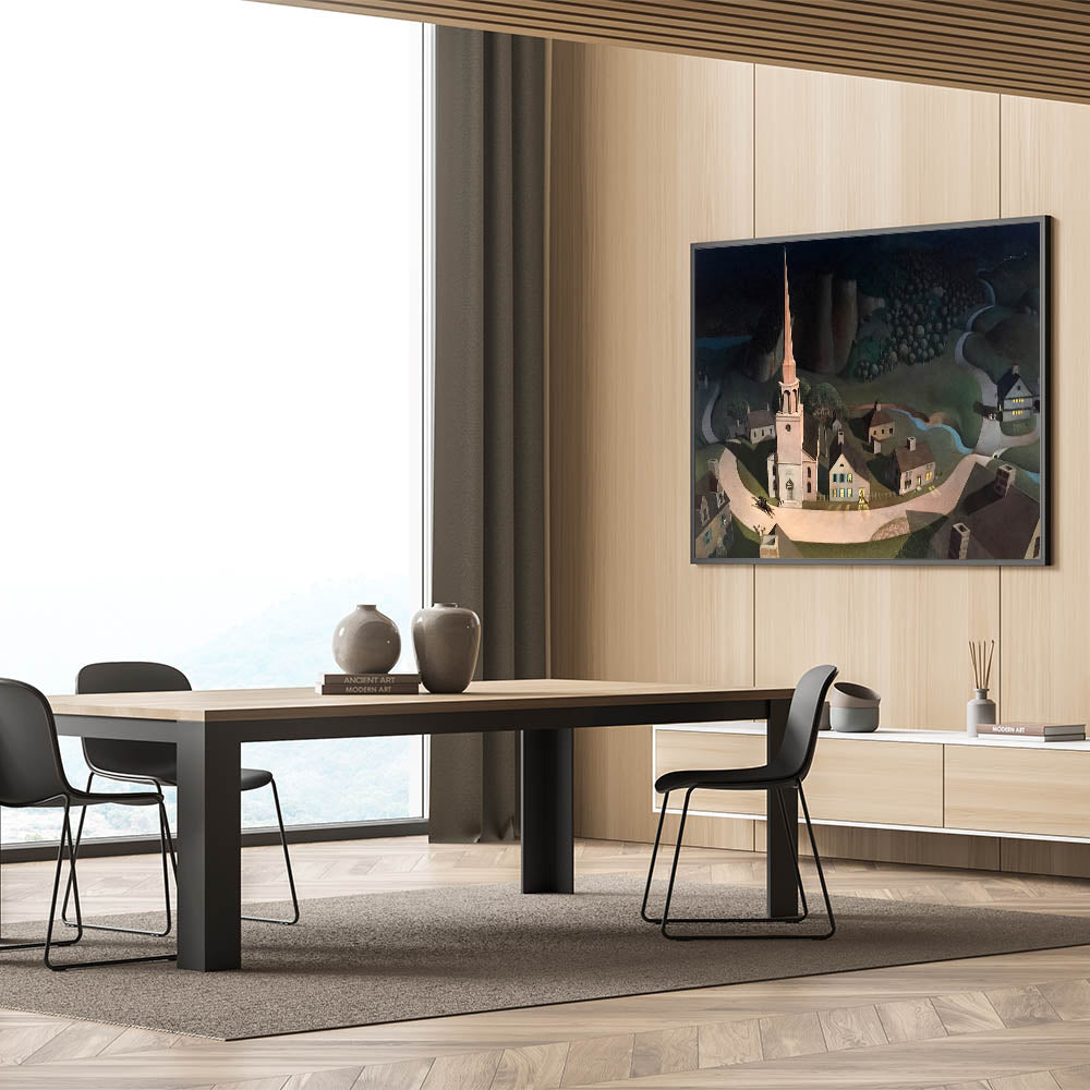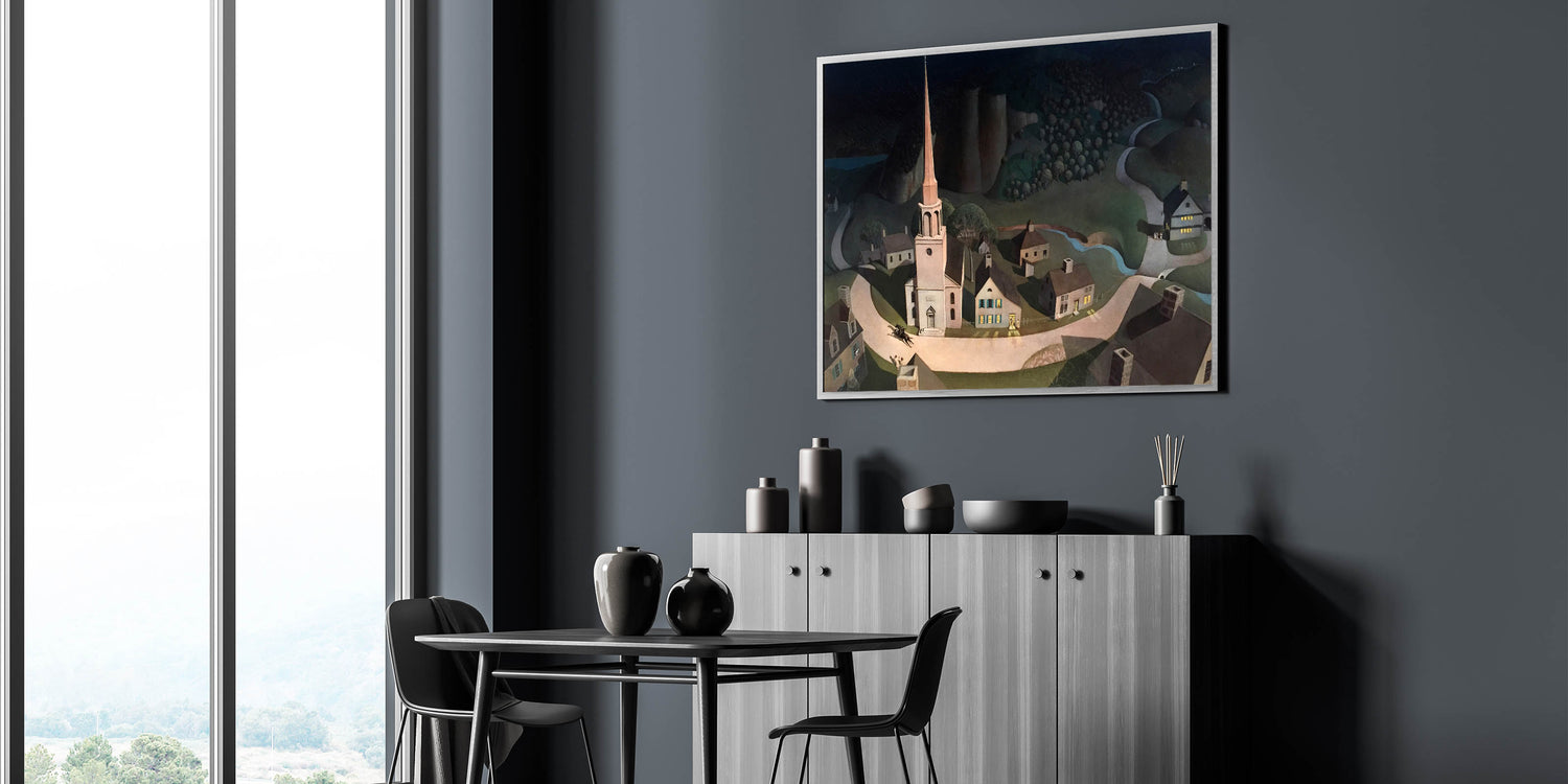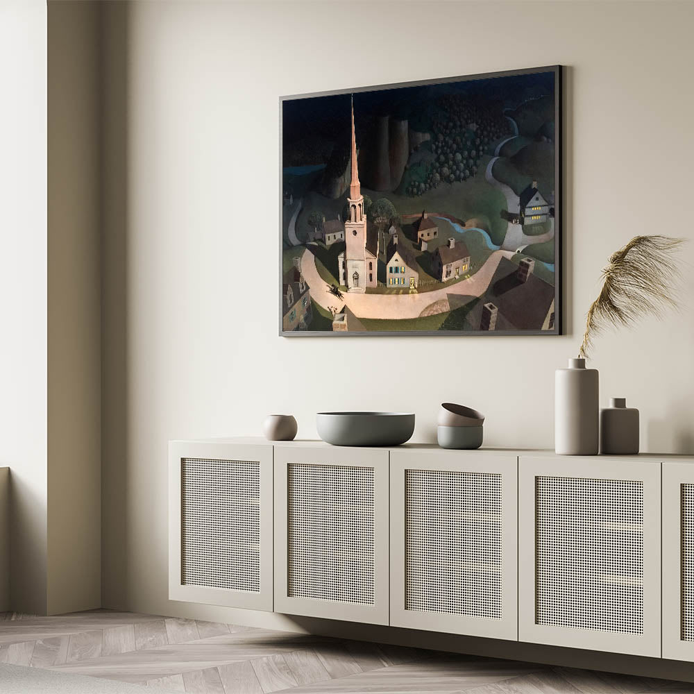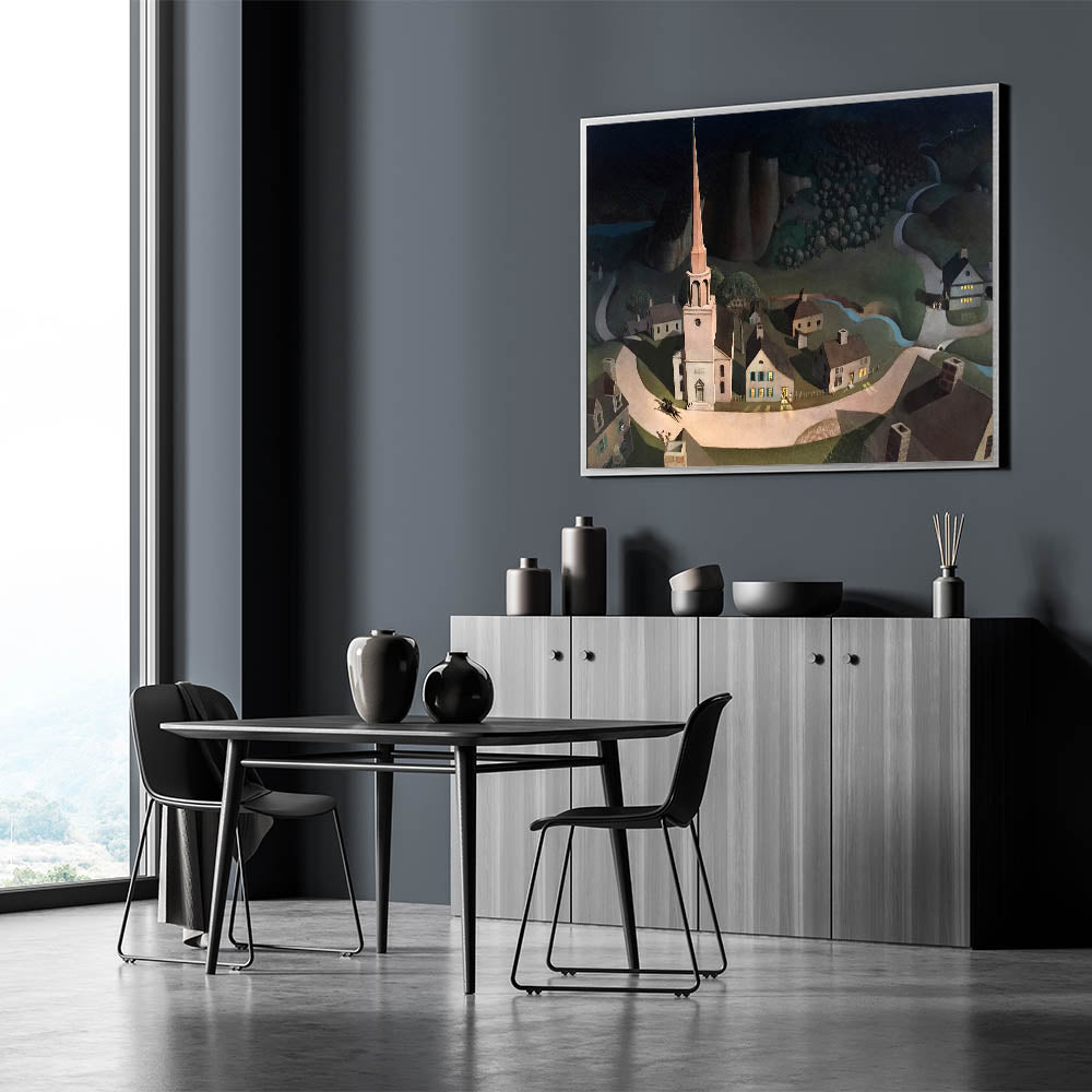 Bring history to life with this stunning Modern Wall Art piece inspired by Paul Revere’s legendary midnight ride. This artwork combines historical charm with a contemporary touch, featuring a serene yet dramatic depiction of a quaint village illuminated under a night sky. The meticulous detailing and shadow play make it an exceptional piece for any modern decor enthusiast.