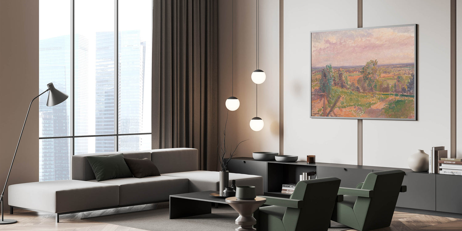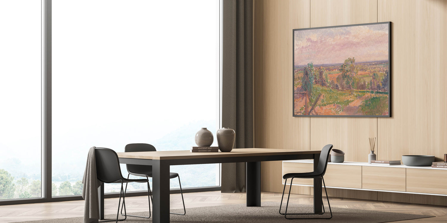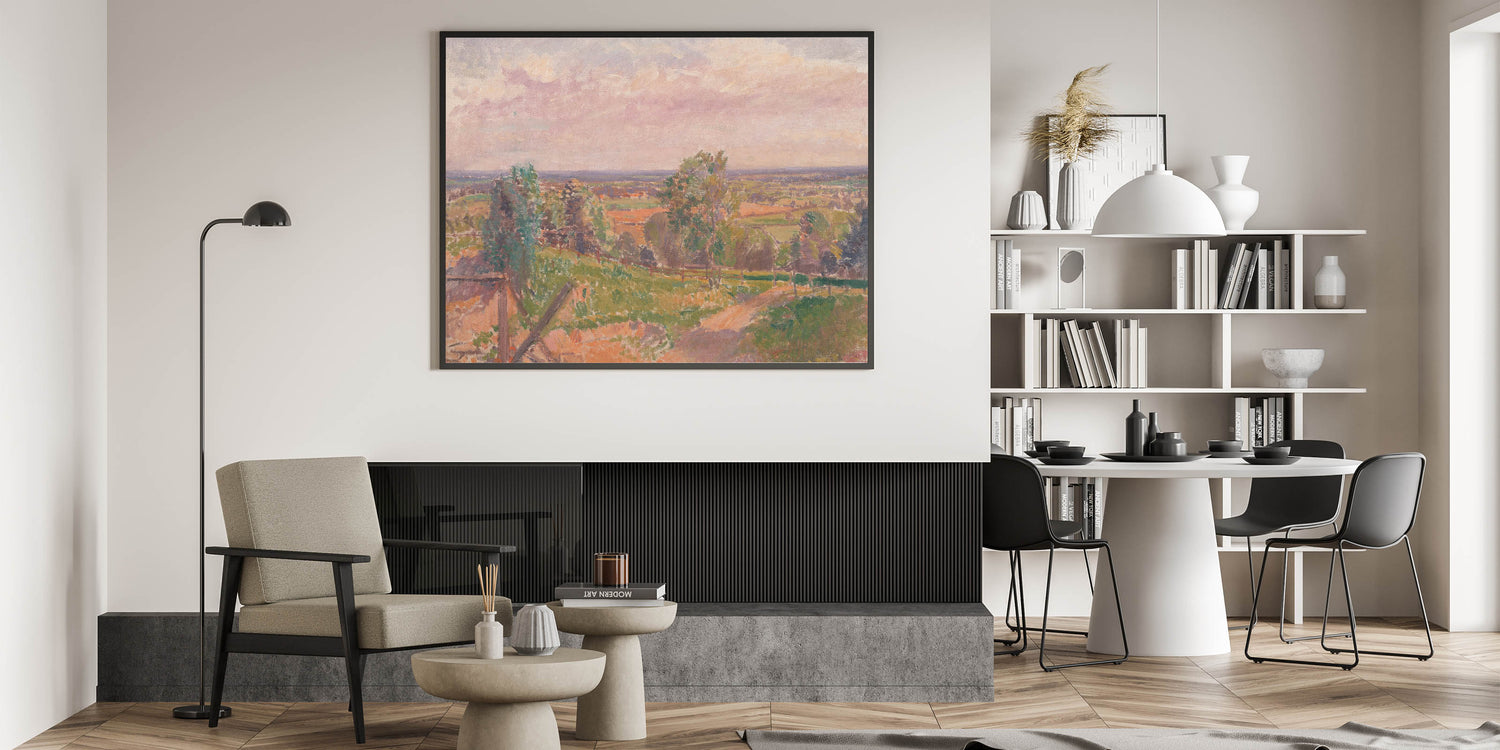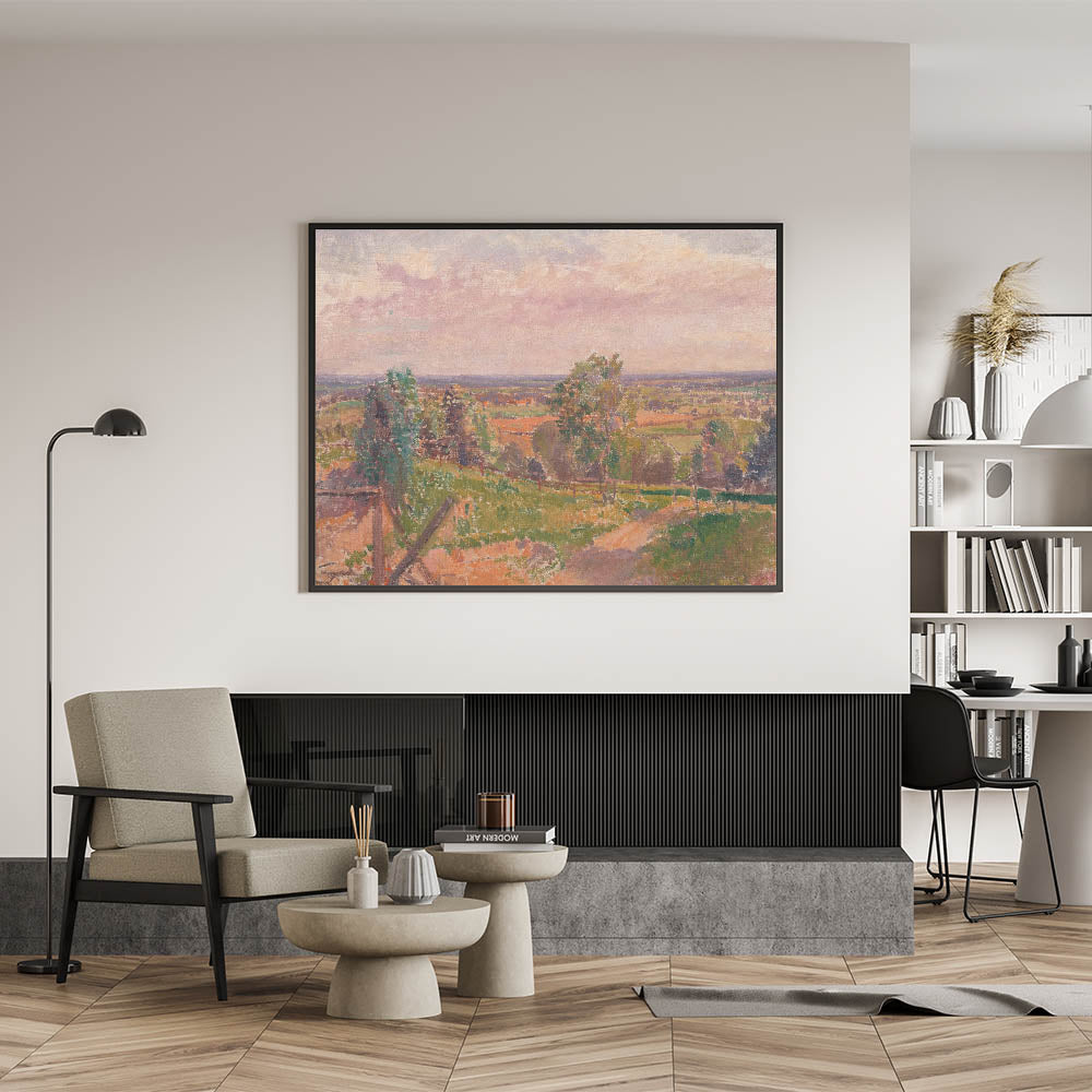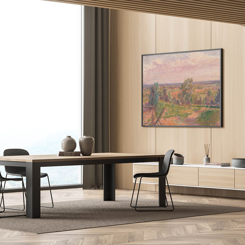 Immerse yourself in the tranquil beauty of nature with this stunning Modern Wall Art, showcasing an extensive Yorkshire landscape. This artwork features a sweeping view of the countryside, with soft pastel tones and intricate textures that capture the essence of the natural environment. The harmonious blend of greens, earthy browns, and gentle pinks evokes a sense of calm and serenity, making it an ideal addition to any modern home.