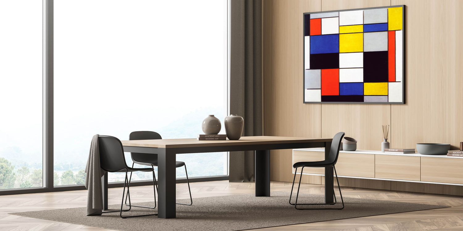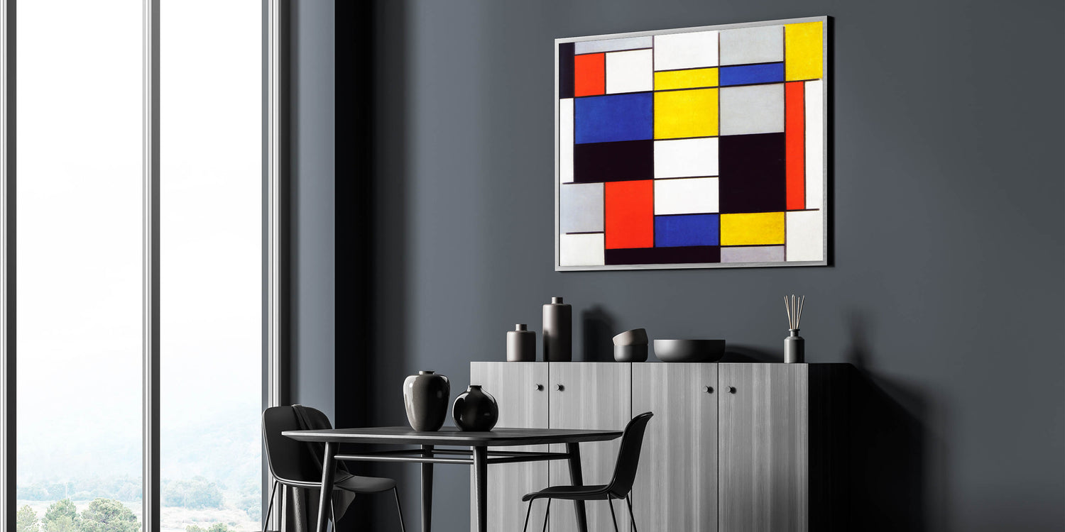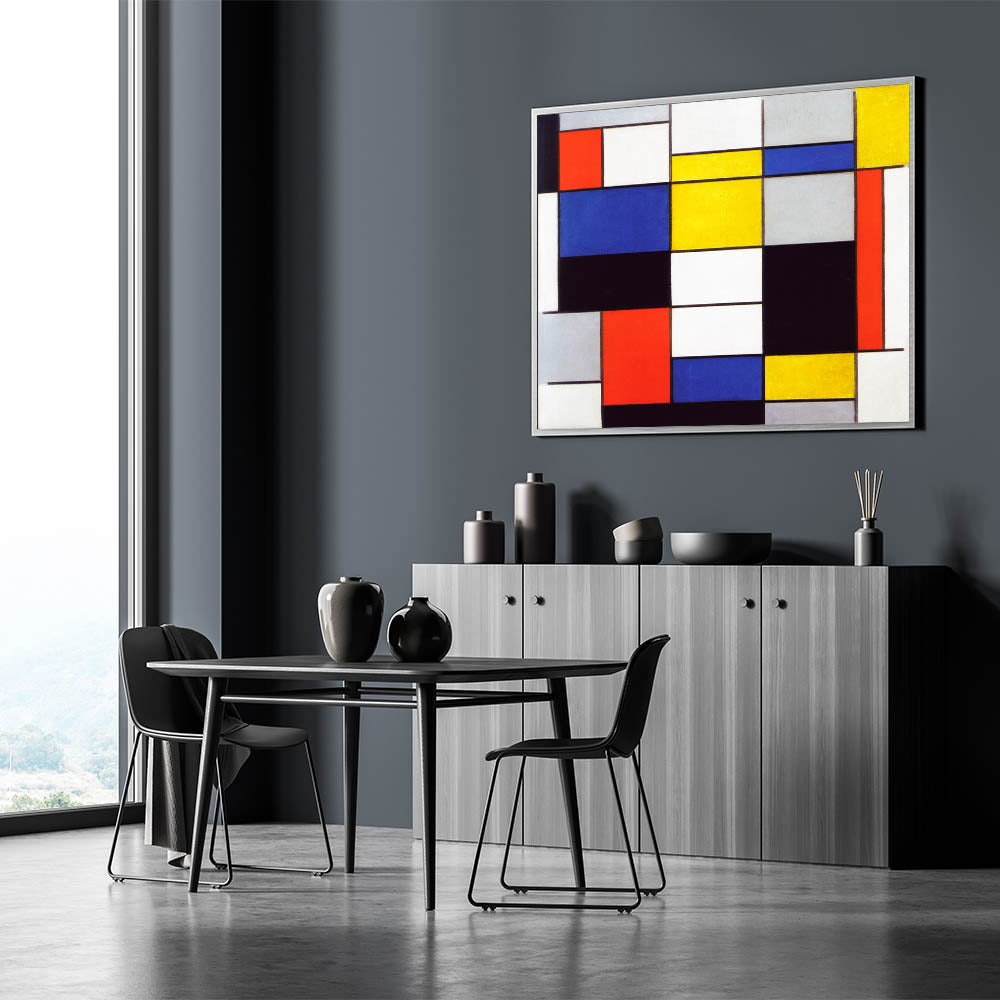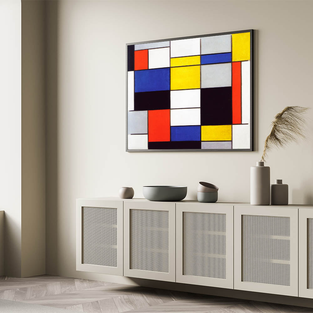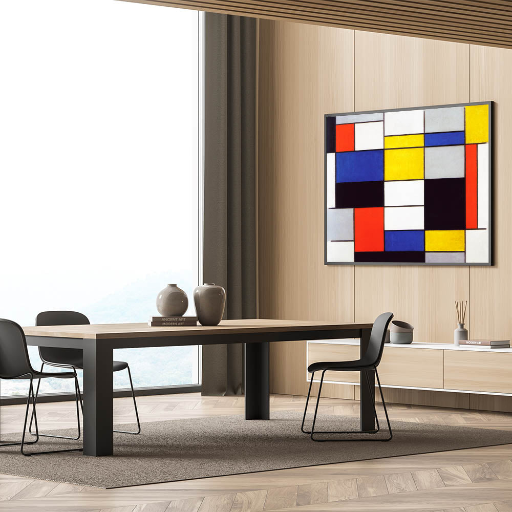 Infuse your home with artistic sophistication through Modern Wall Art, showcasing Piet Mondrian’s "Composition A" (1920). This dynamic piece highlights Mondrian’s mastery of geometric abstraction, featuring bold primary colors, crisp black lines, and balanced proportions. A hallmark of the De Stijl movement, this artwork is ideal for admirers of abstract modern art and minimalist interiors.