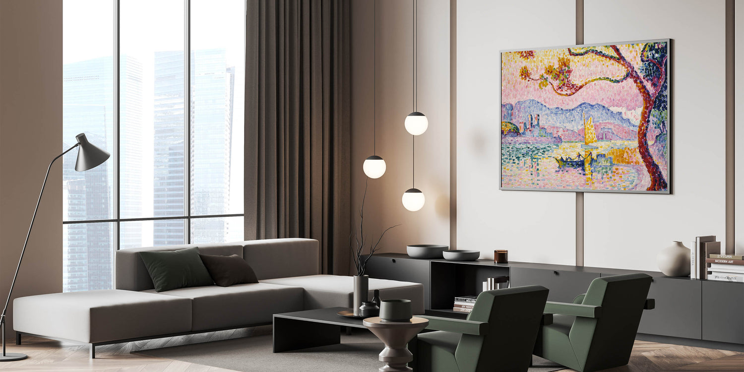 Bring the brilliance of Pointillism to your home with this Modern Wall Art piece, inspired by Paul Signac’s Antibes. This stunning artwork captures the Mediterranean coastline with vibrant, mosaic-like brushstrokes of pinks, blues, and yellows. Perfect for brightening up contemporary or eclectic interiors, this piece exudes warmth and artistic charm.