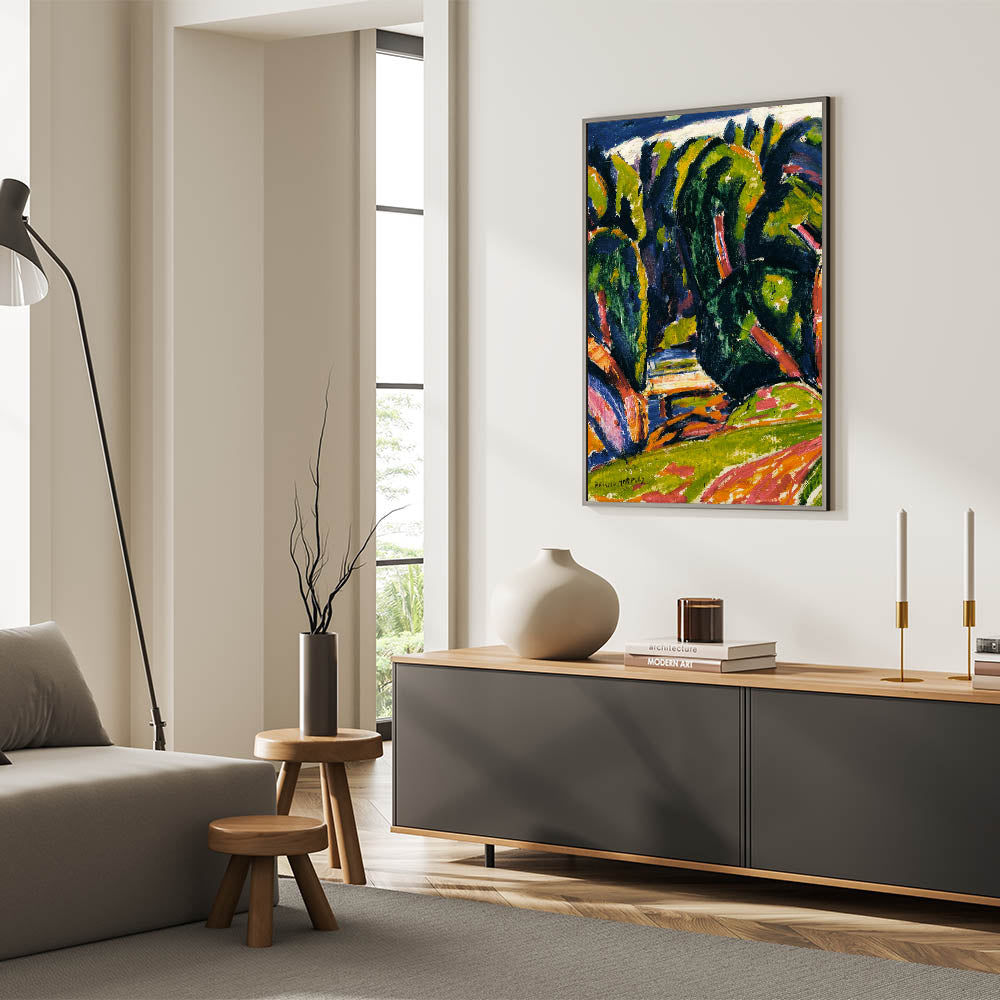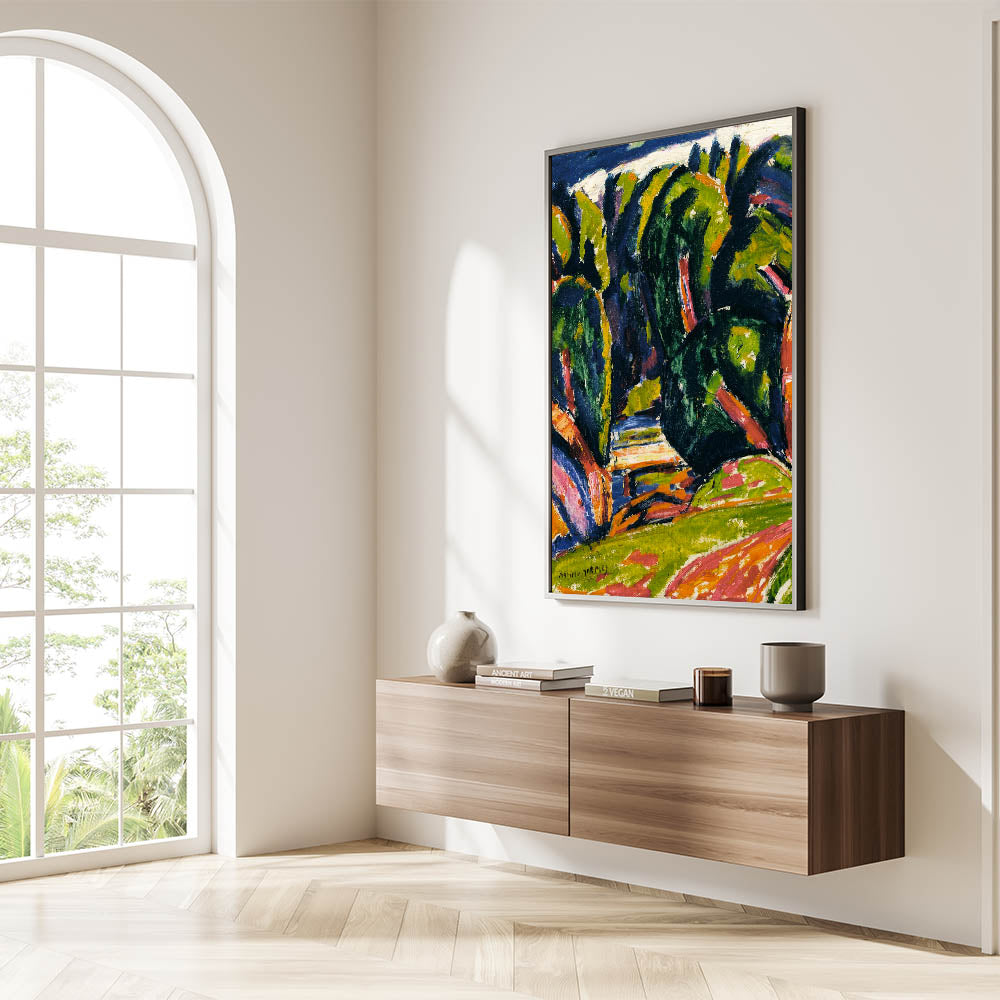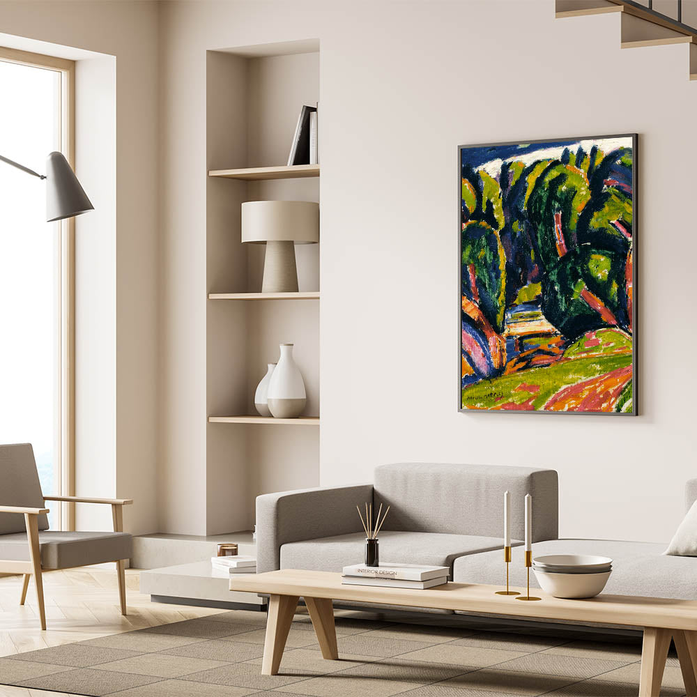 Modern Wall Art - Red Tree Abstract Landscape in Vibrant Expressionist Style