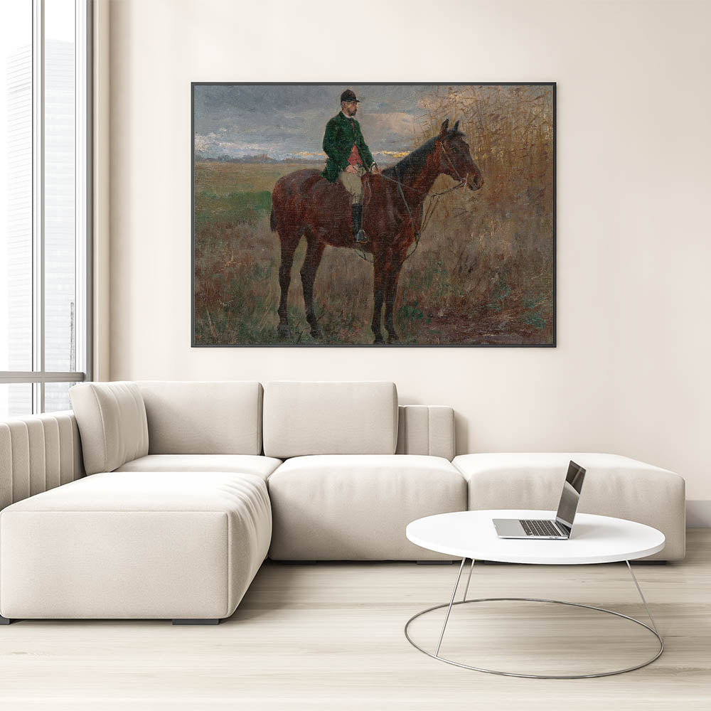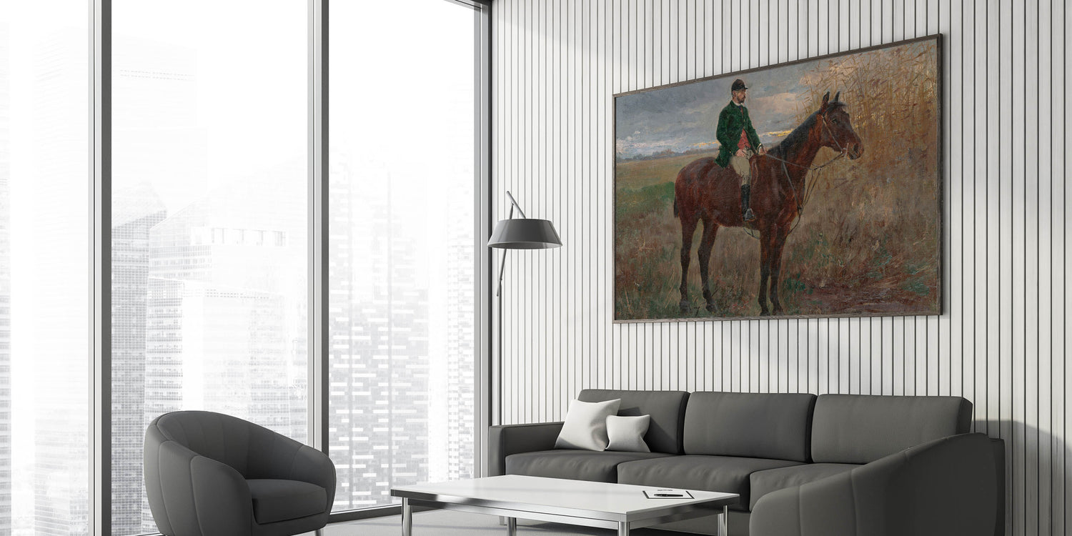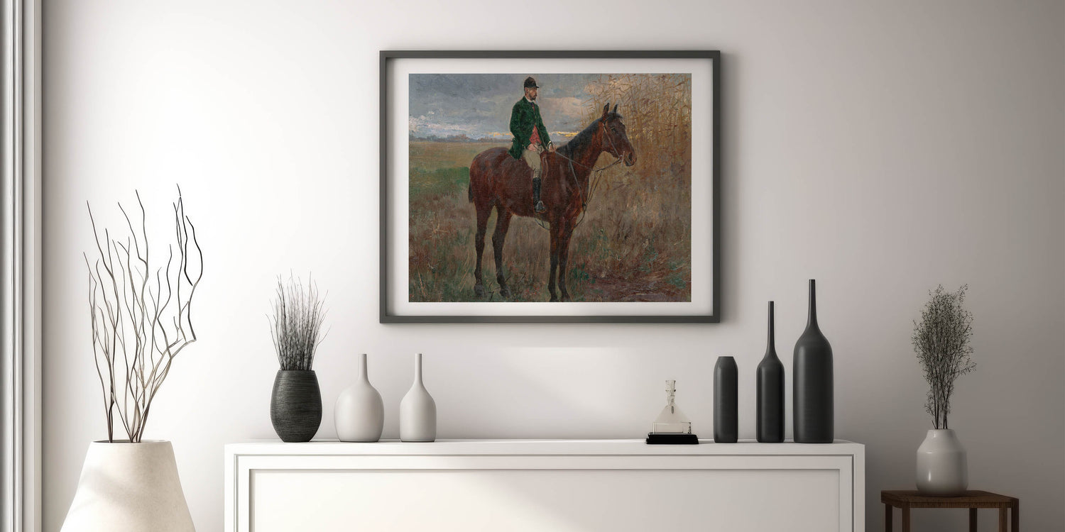 Bring a sense of serenity and heritage to your home with this beautiful modern wall art inspired by László Mednyánszky's "Study of a Rider on a Horse." This timeless piece features a lone rider on horseback set against a peaceful rural backdrop with muted earth tones and soft brushstrokes. The naturalistic composition and subtle details make it a perfect choice for those who appreciate art that captures the beauty of the countryside.