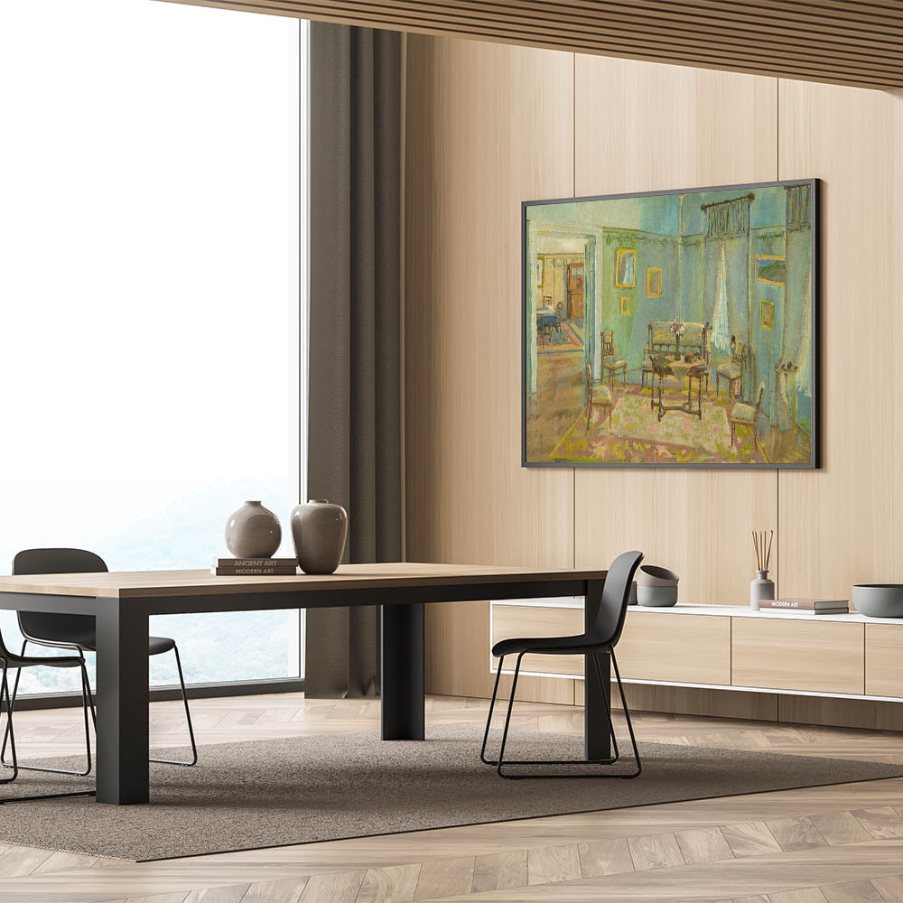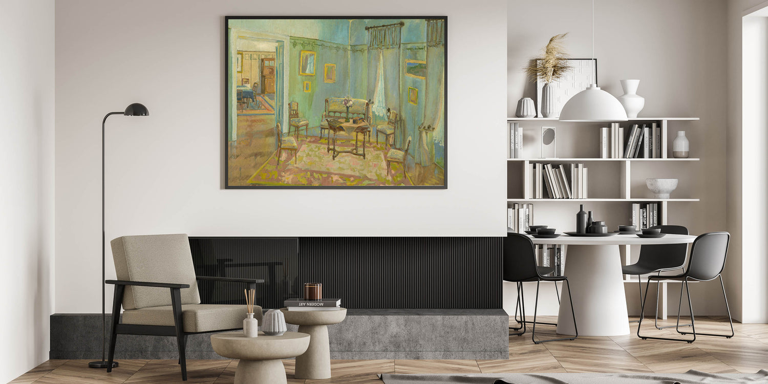Transform your space with the tranquil elegance of this Modern Wall Art piece, inspired by Konštantín Bauer’s Room Interior. This captivating artwork offers a glimpse into a serene and refined interior setting, showcasing soft blues, warm pastels, and intricate furniture details. Bauer’s painterly style adds a touch of nostalgia, making this piece perfect for classic and modern interiors alike.
