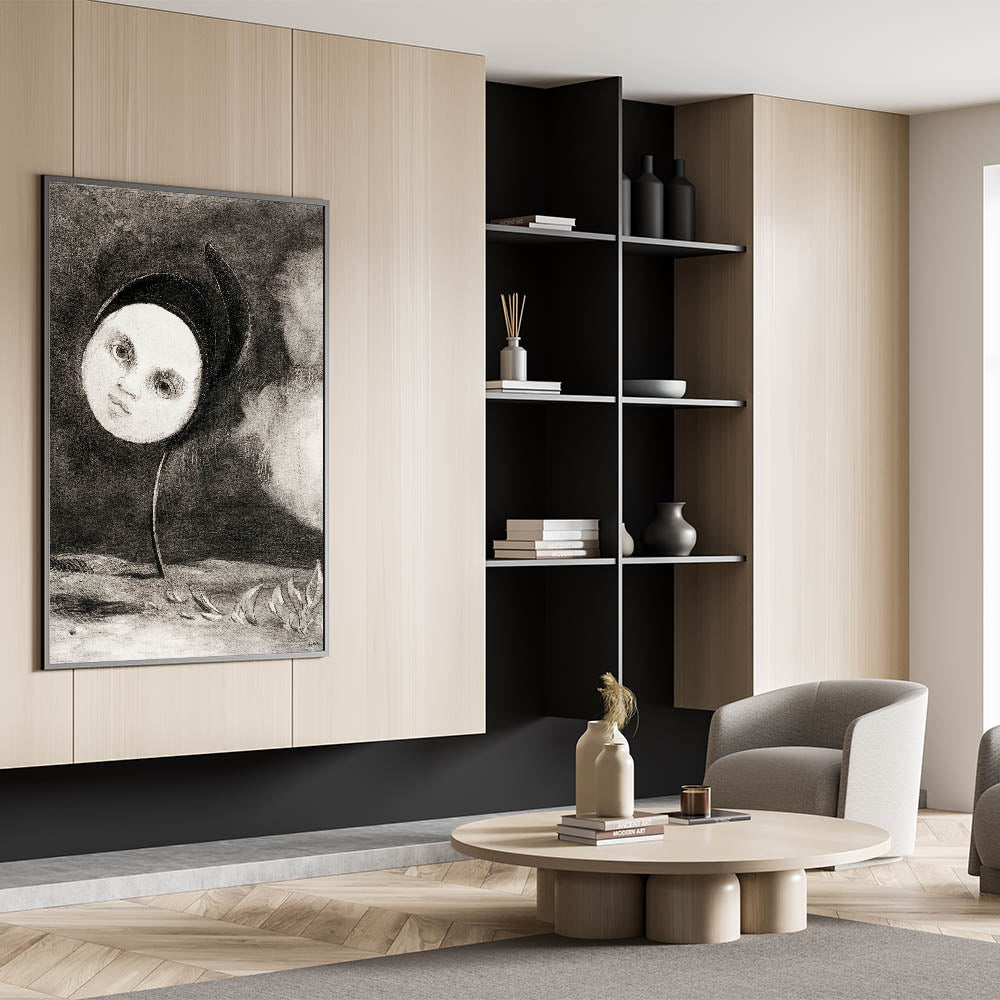 Modern Wall Art - Strange Flower Abstract Portrait in Monochromatic Style