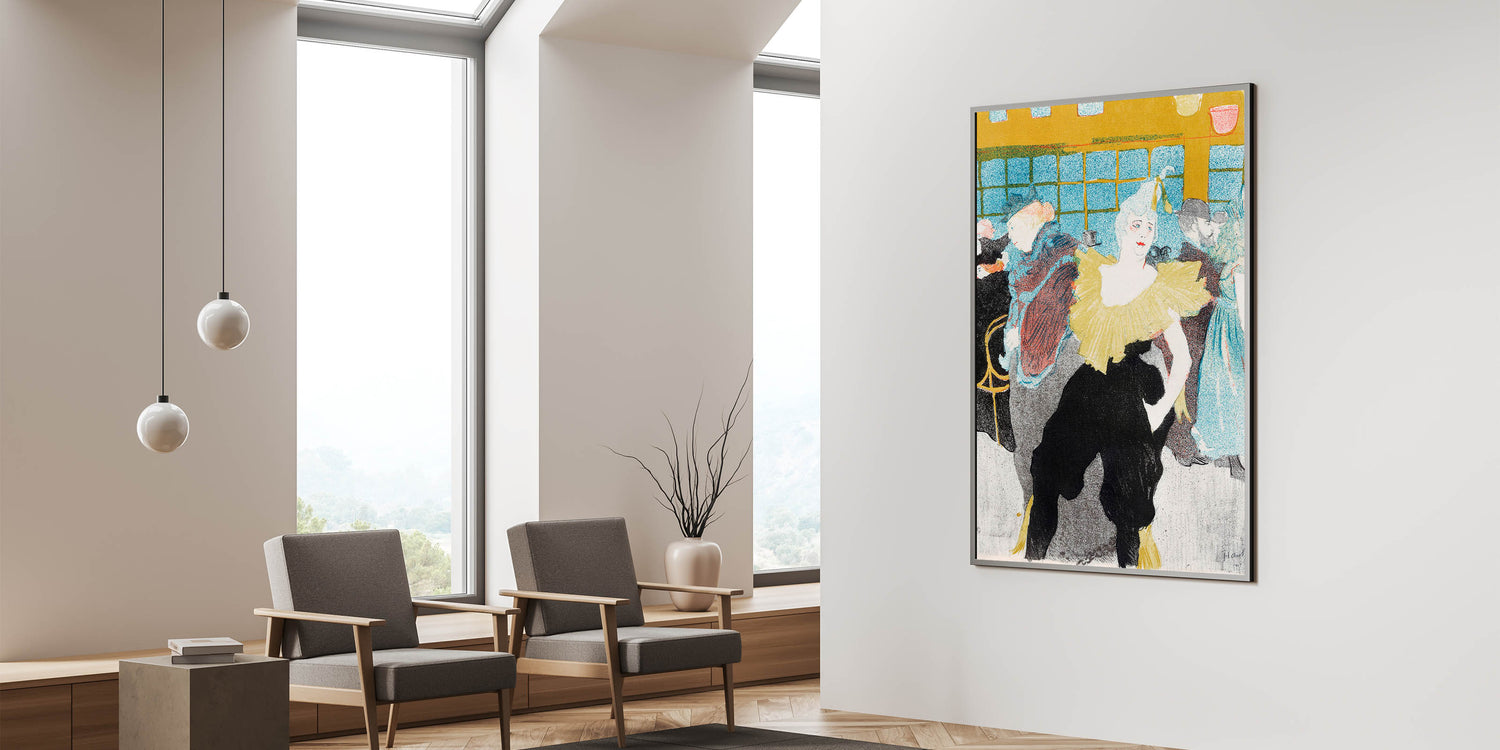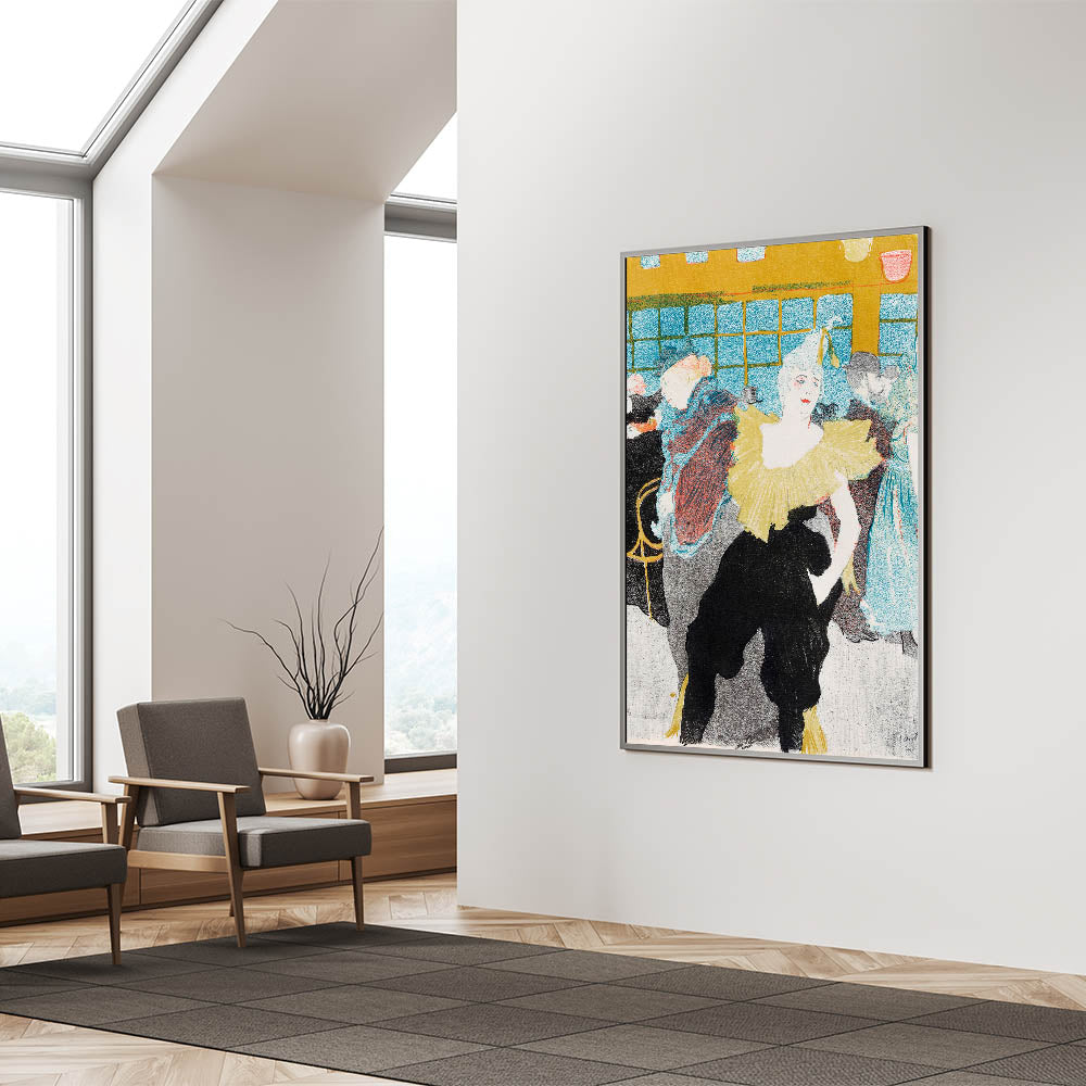 Step back into the lively energy of the Belle Époque with Modern Wall Art, featuring The Clownesse by Henri de Toulouse-Lautrec. This vibrant and dynamic piece captures the spirit of Parisian nightlife, with bold colors and expressive details that bring the scene to life. The central figure, adorned in a striking yellow ruffled costume, exudes charisma and charm, making this artwork an iconic statement piece for trendy home decor.