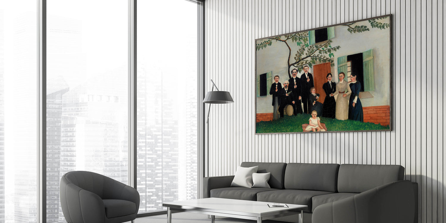 Celebrate the charm of family and tradition with this Modern Wall Art piece, inspired by Henri Rousseau’s The Family (ca. 1890–1900). This unique artwork features a heartwarming depiction of a family gathering, captured with Rousseau’s signature naïve style. The detailed greenery and soft tones make this piece a perfect addition to modern and vintage-inspired interiors.