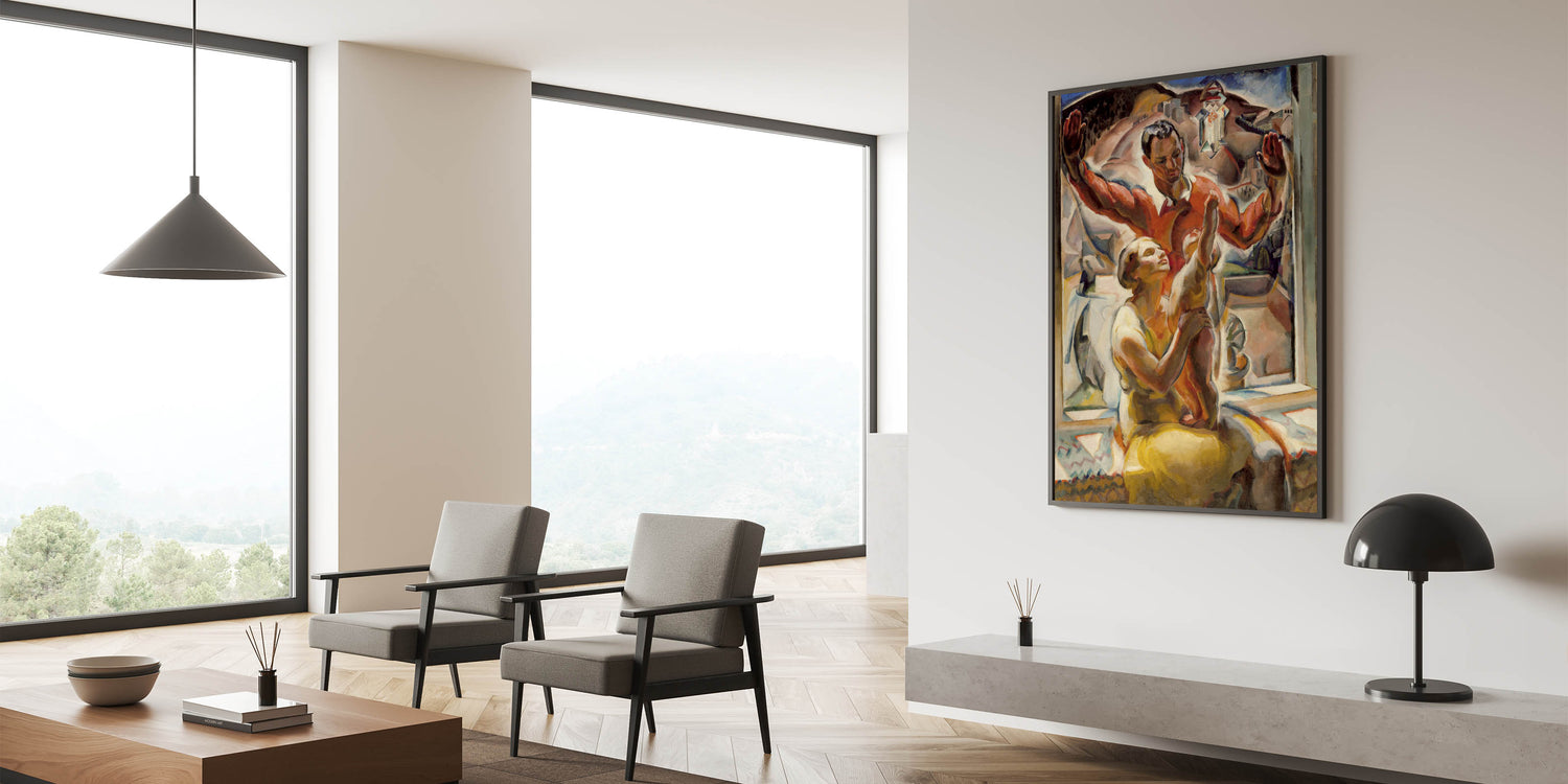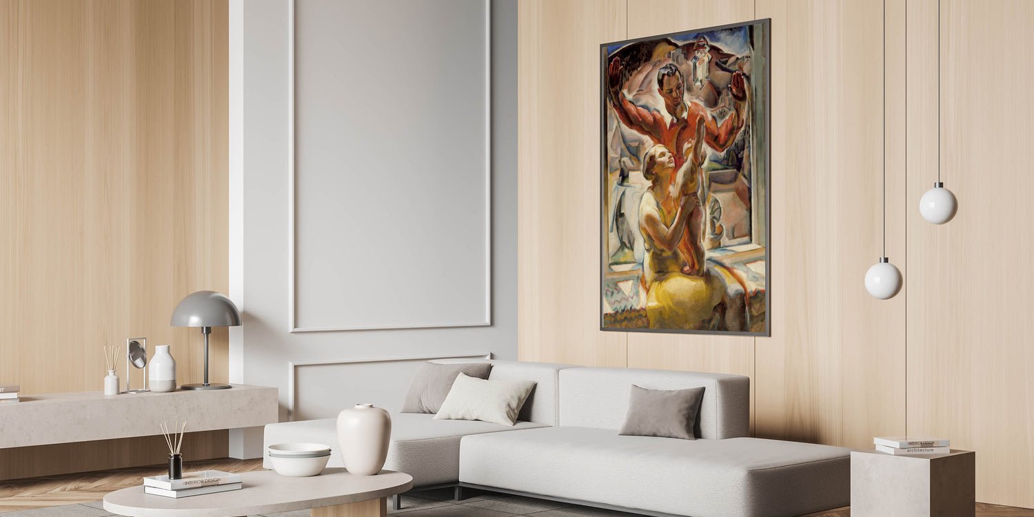 Bring timeless warmth to your space with Modern Wall Art featuring The Herwigs by Edouard Antonin Vysekal. This expressive family portrait beautifully combines cubist influences with soft, warm tones, creating a visually striking depiction of familial love and unity. Perfect for art enthusiasts looking to incorporate trendy home decor and stylish wall art into their interiors, this piece radiates emotion and sophistication.