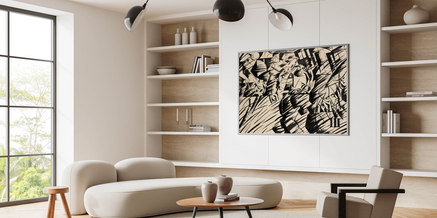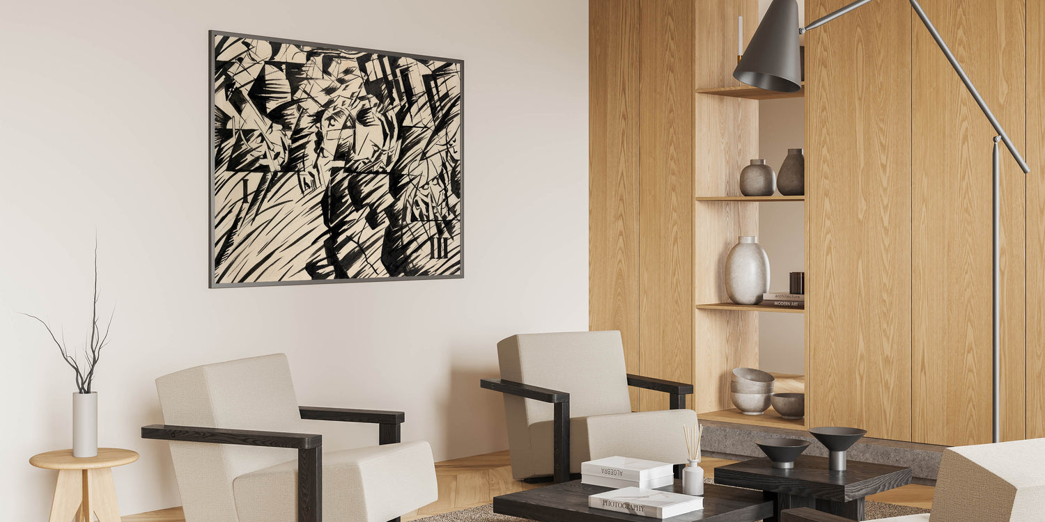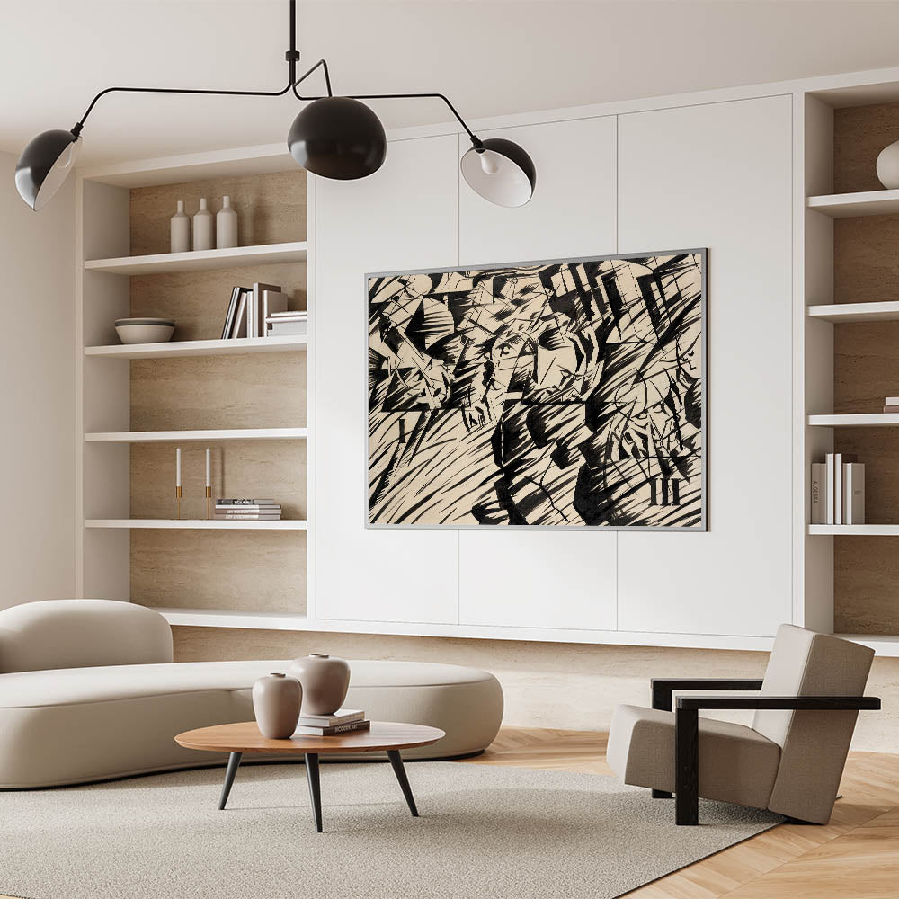 Bring the energy of Futurism into your space with this Modern Wall Art featuring Umberto Boccioni's "States of Mind: Those Who Go." This powerful black-and-white composition captures the chaos and emotion of movement and departure, showcasing dynamic lines and fragmented forms that are hallmarks of Contemporary Art and Trendy Home Décor.