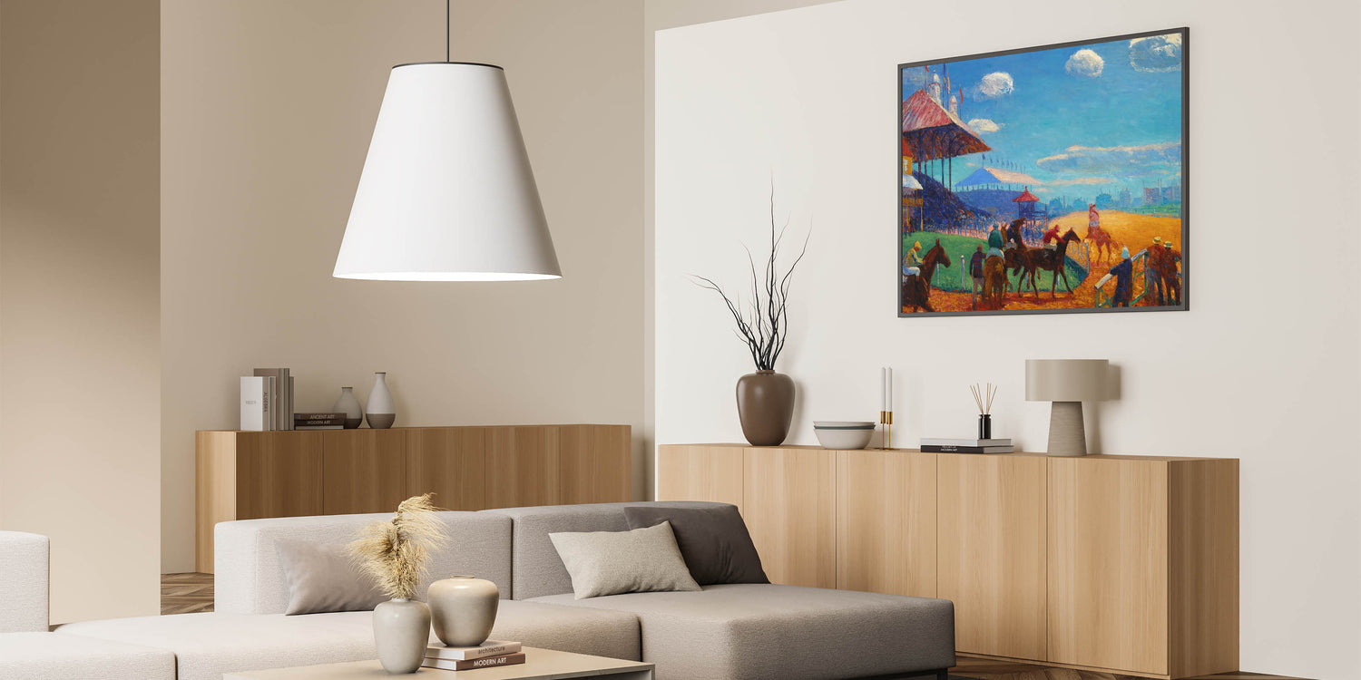 - Dynamic design: A vibrant portrayal of a race track scene, perfect for creating a focal point in contemporary or classic interiors.