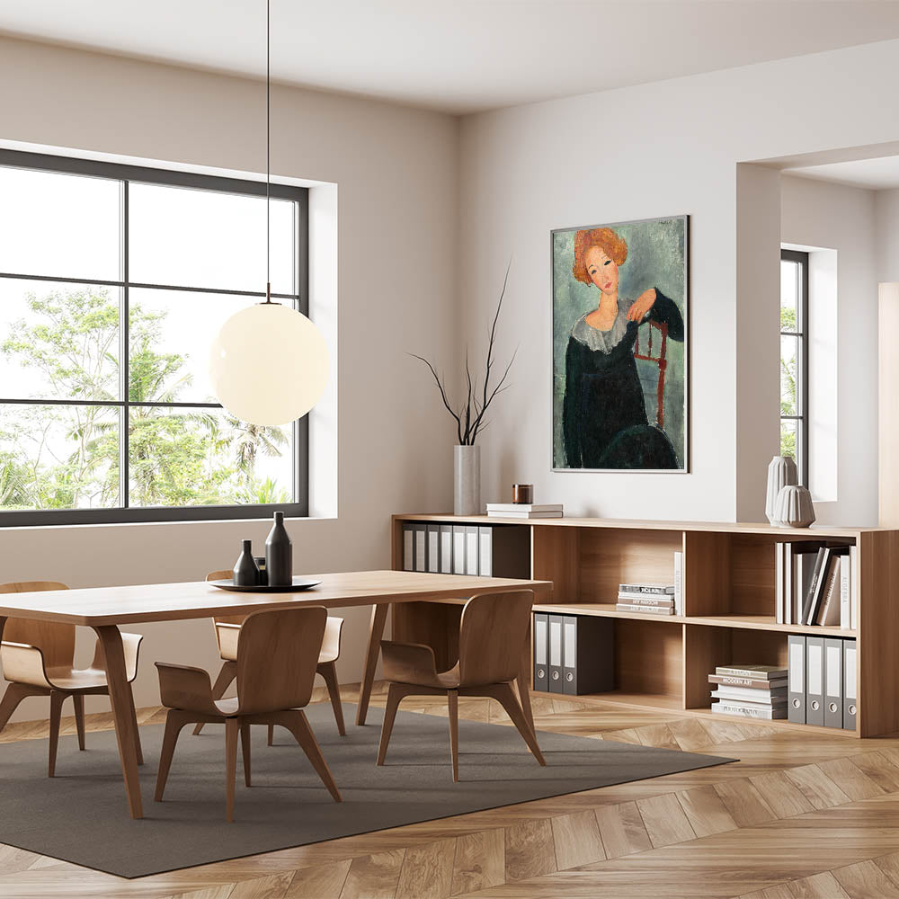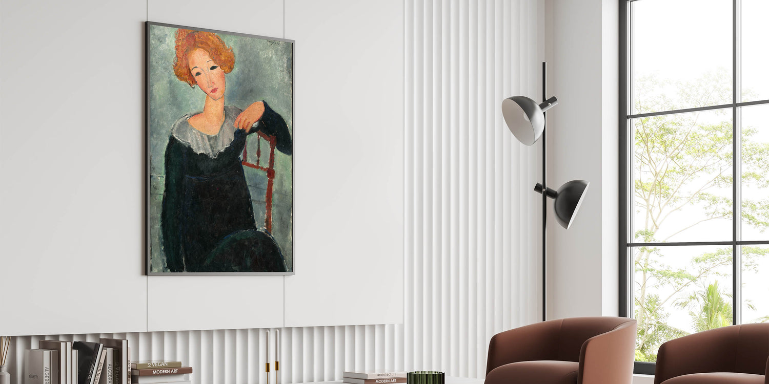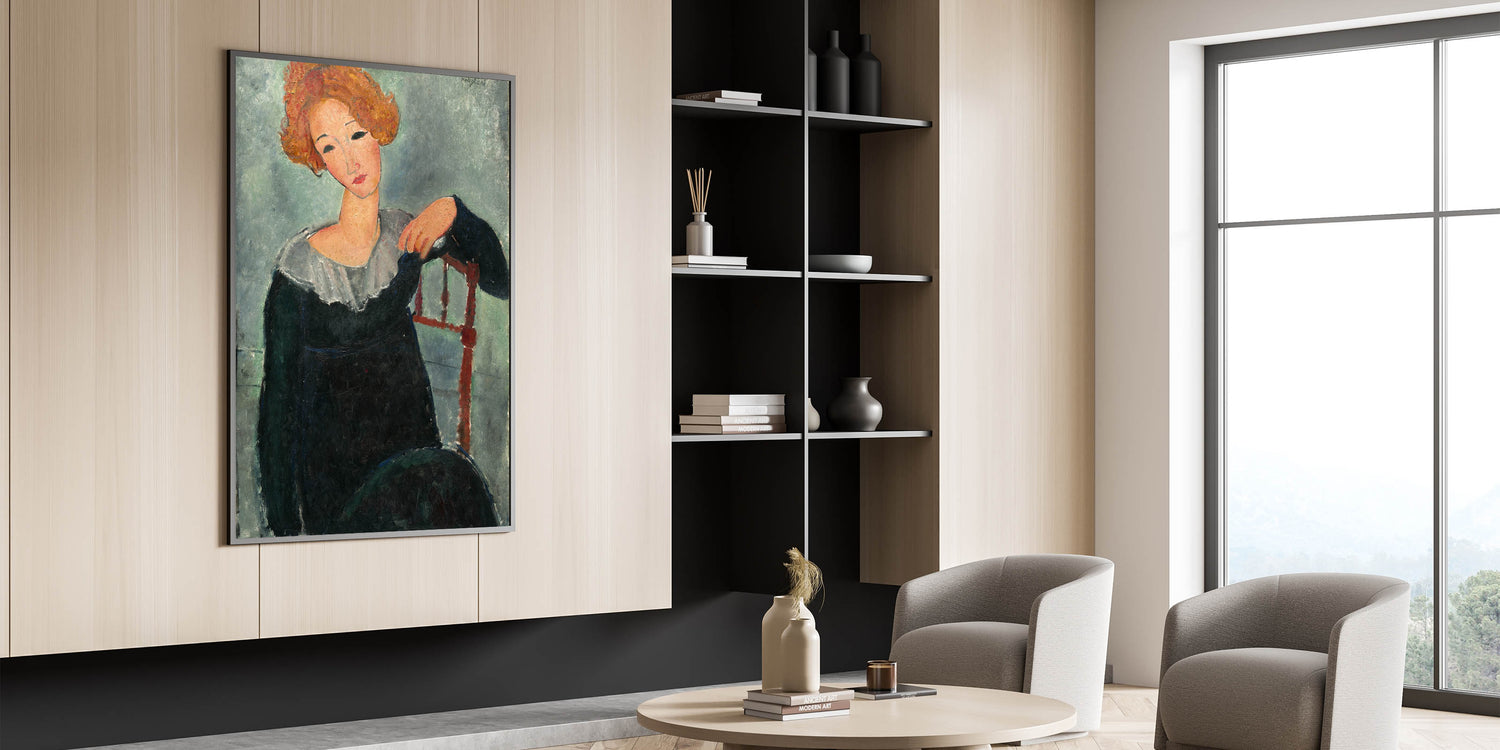 Introduce timeless beauty to your decor with the "Woman with Red Hair" Modern Wall Art. Inspired by Amedeo Modigliani’s 1917 work, this stunning portrait combines bold brushwork, soft hues, and a serene expression to create a captivating visual. The earthy tones and abstract style make it ideal for anyone looking to add stylish wall art with a touch of classic elegance to their space.