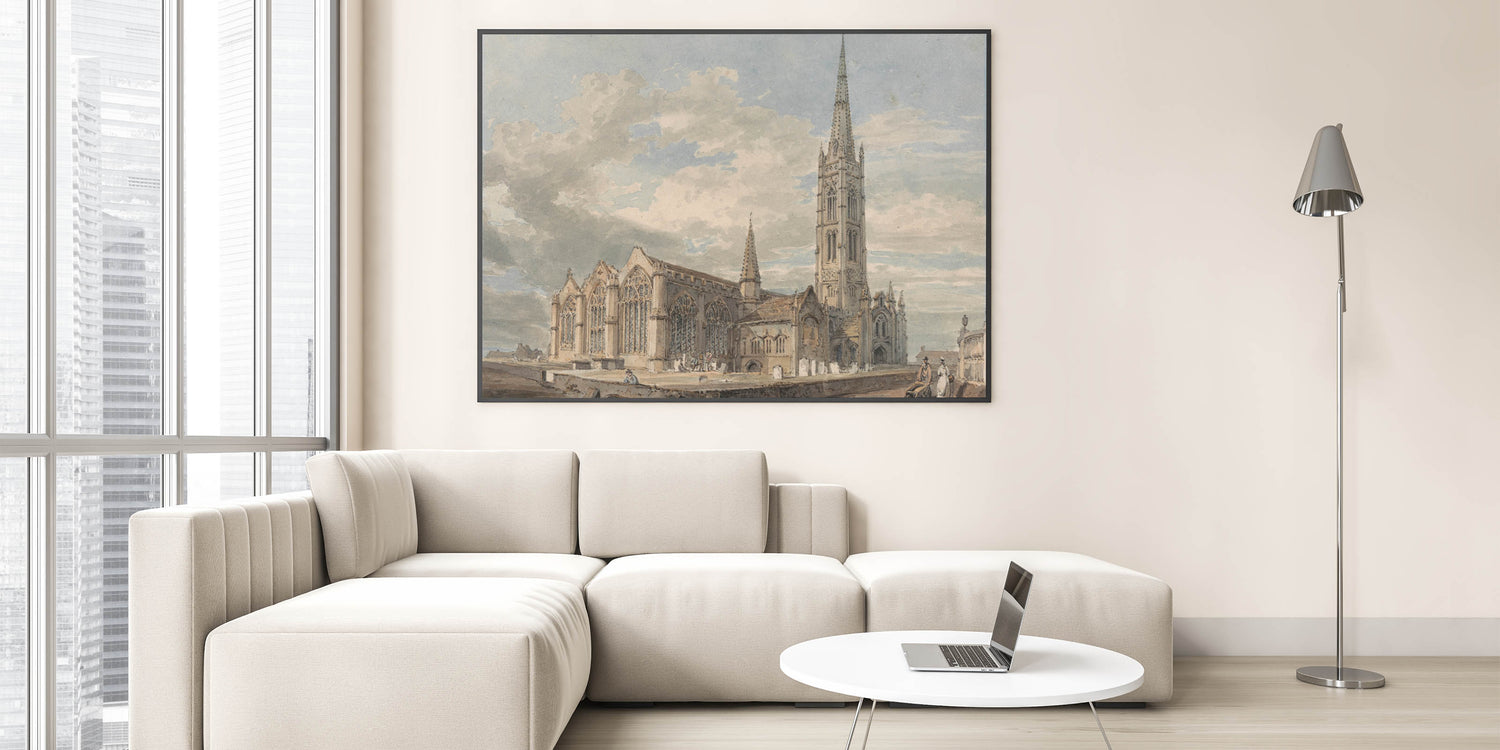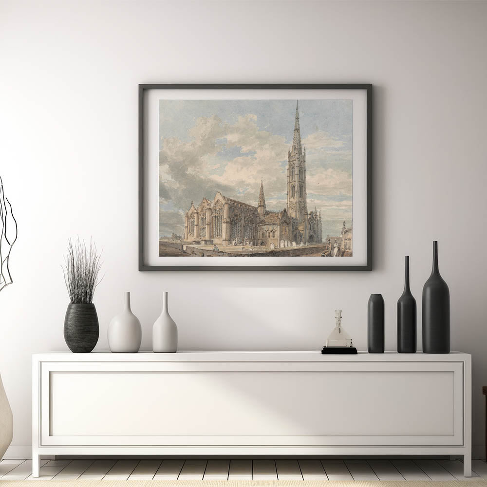 Celebrate the architectural beauty and historic elegance of the Romantic era with this exquisite artwork, "North-East View of Grantham Church, Lincolnshire." This masterpiece captures the grandeur of Gothic architecture under a serene sky, showcasing the Romantic fascination with timeless structures and their cultural significance. The delicate detailing and soft palette evoke a sense of tranquility and admiration for the historic craftsmanship.