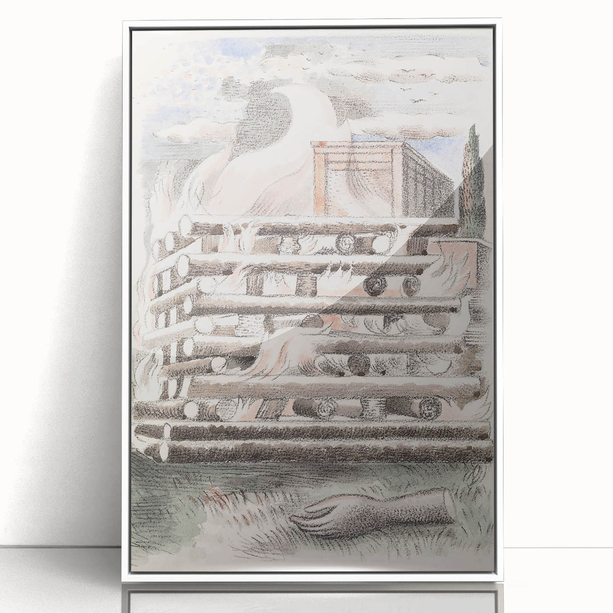 Experience the evocative artistry of Paul Nash with his 1932 illustration, Design for Urne Buriall: Funeral Pyre. This piece captures the ethereal and profound themes of life and transition, blending surrealist and modernist influences. Nash’s delicate use of pastel tones and intricate linework creates a dreamlike composition, making this artwork a contemplative addition to any space.