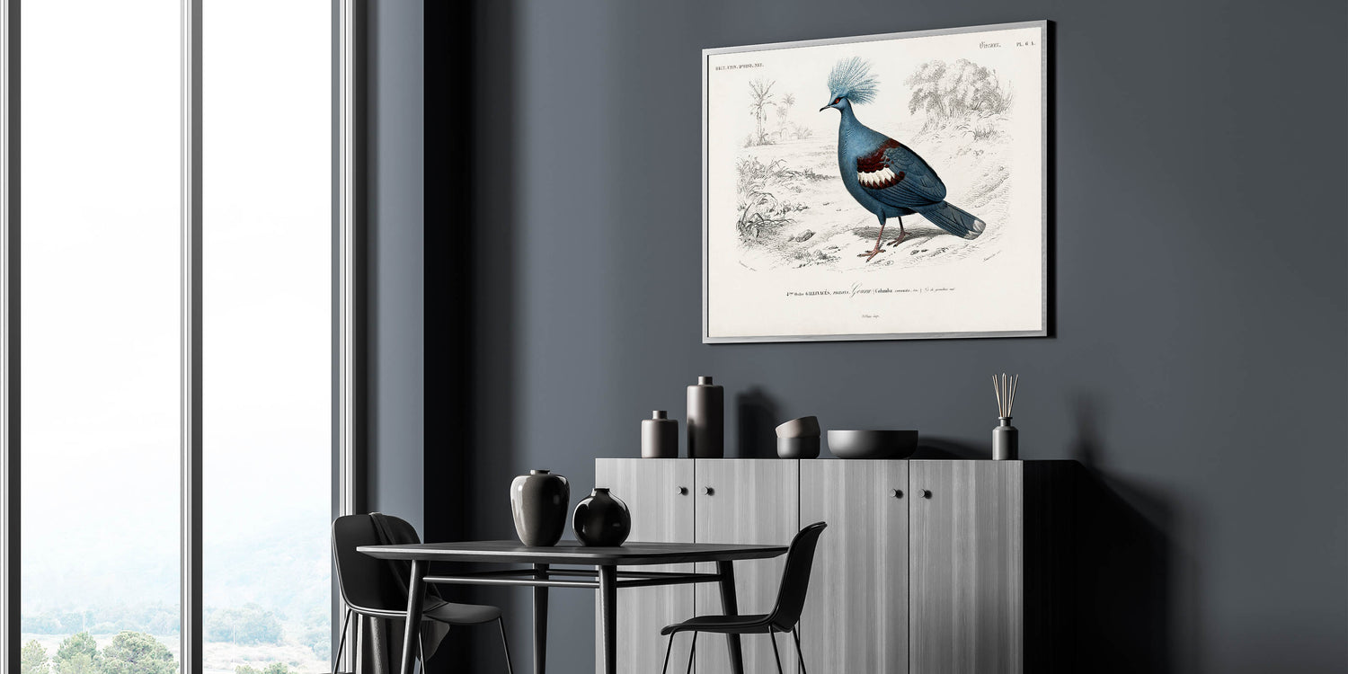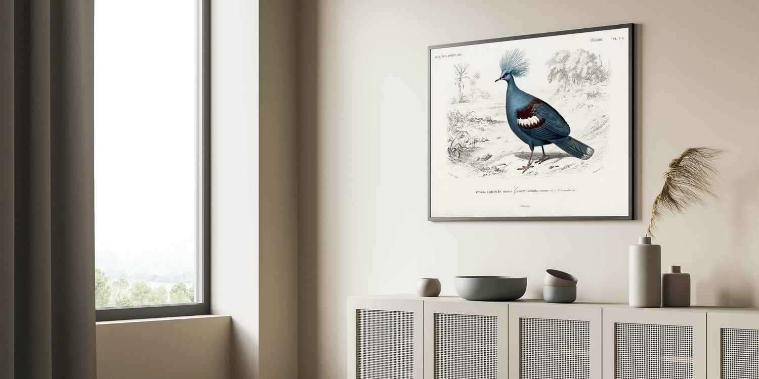 - Romantic Wildlife Art: Highlights the exotic beauty of the Crowned Pigeon with vivid colors and fine details.