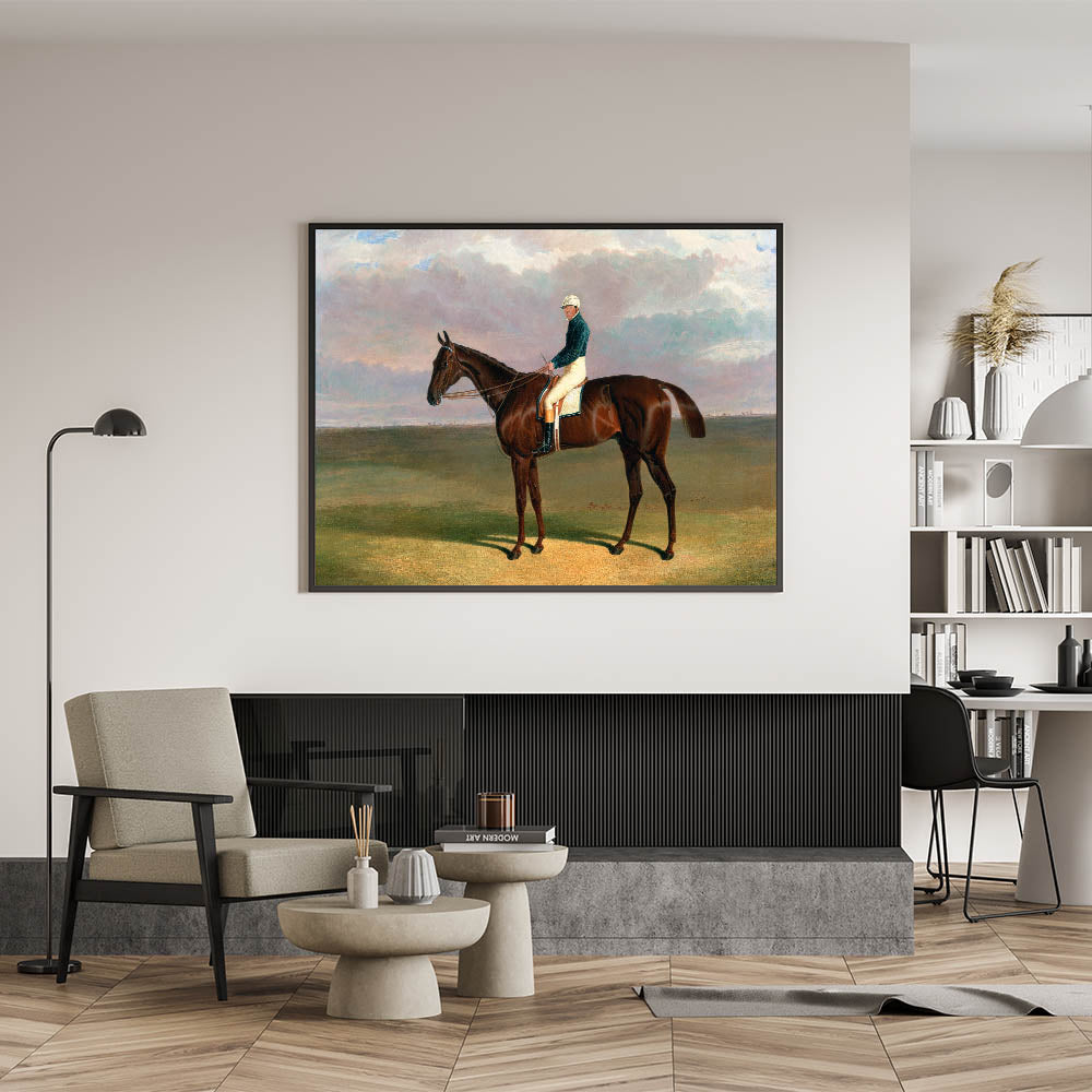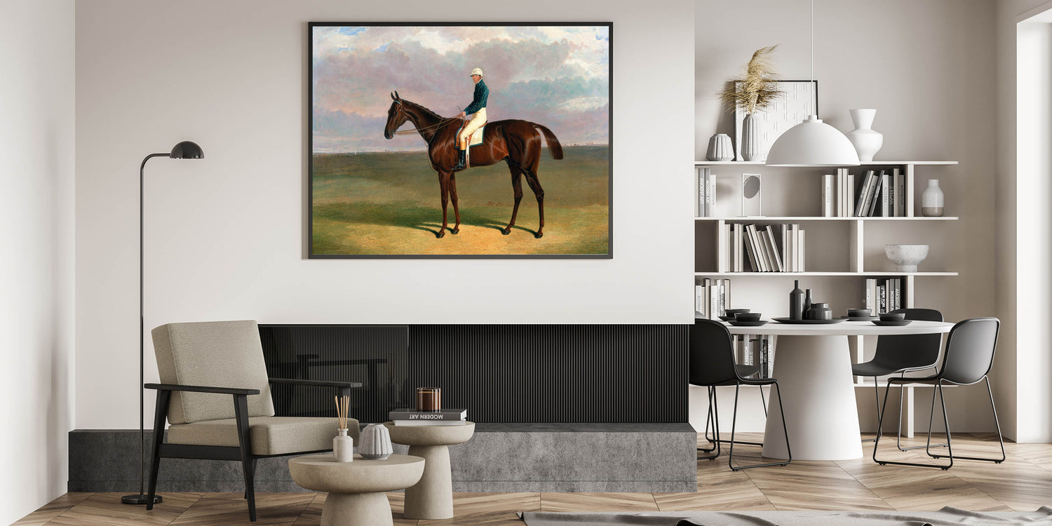 Celebrate the timeless elegance of equestrian art with Margrave with James Robinson Up (1833) by John Frederick Herring. This striking painting captures the regal posture of the racehorse Margrave and his jockey set against an expansive landscape. Herring’s masterful attention to detail showcases the horse’s strength and grace, making this piece a quintessential example of Romantic-era equestrian art.