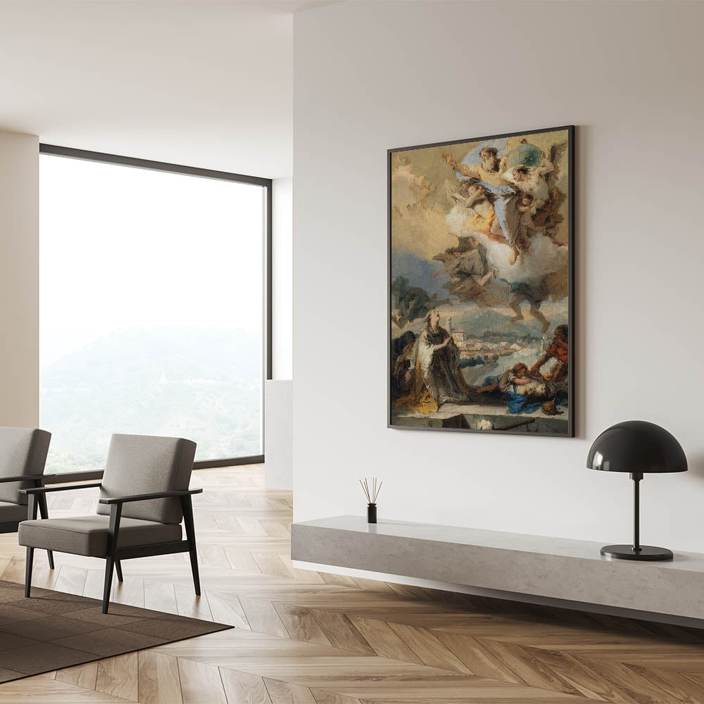 Experience the profound emotional depth of Romanticism with "Saint Thecla Praying for the Plague-Stricken" by Giovanni Battista Tiepolo. This masterpiece captures the divine intervention of Saint Thecla as she intercedes for the suffering, blending ethereal light and vivid human emotion. Rich in historical and cultural significance, this artwork is an ideal piece for those who admire the classic art of the Romantic era.