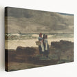 Embrace the beauty of nature's contrasts with "Sun and Clouds" by Winslow Homer. This evocative Realism art print depicts a dramatic coastal scene with three women standing on the rocky shore, their faces turned toward the waves and turbulent sky. The combination of dark clouds and hints of sunlight captures a sense of anticipation, making this piece perfect for those who appreciate coastal art with depth and emotion.
