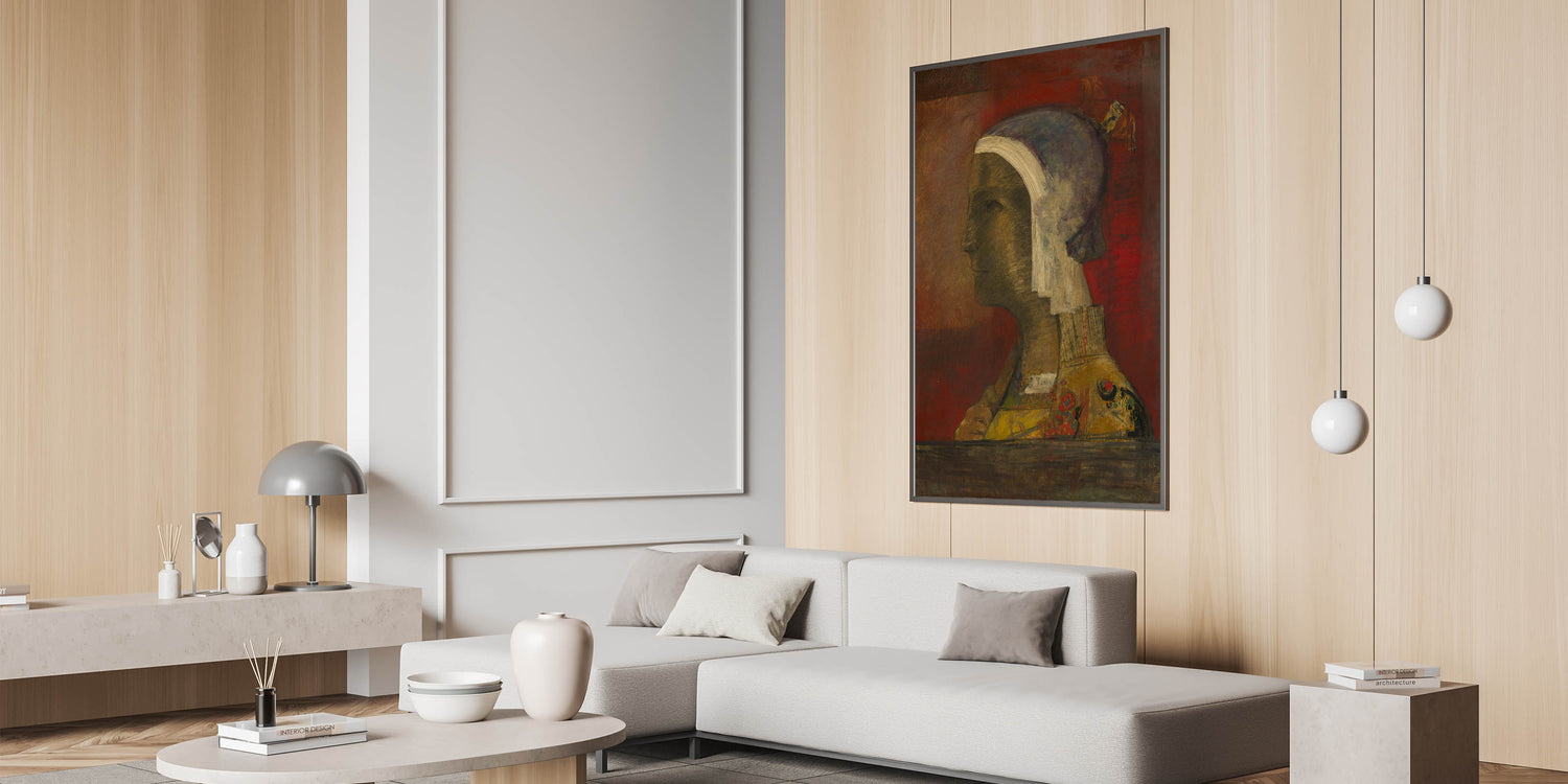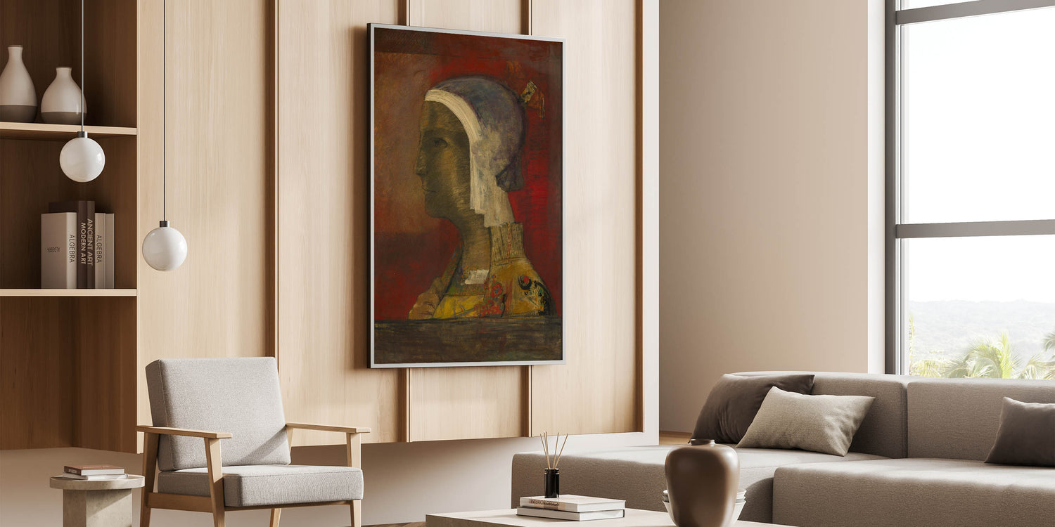 Introduce a striking blend of history and modernity to your home with the "Symbolic Head Modern Wall Art." This captivating abstract modern art piece, inspired by timeless symbolism, combines earthy tones of red, brown, and gold with minimalist design elements. Perfect for trendy home decor enthusiasts, it reflects an understated elegance while drawing attention with its unique color palette and texture.
