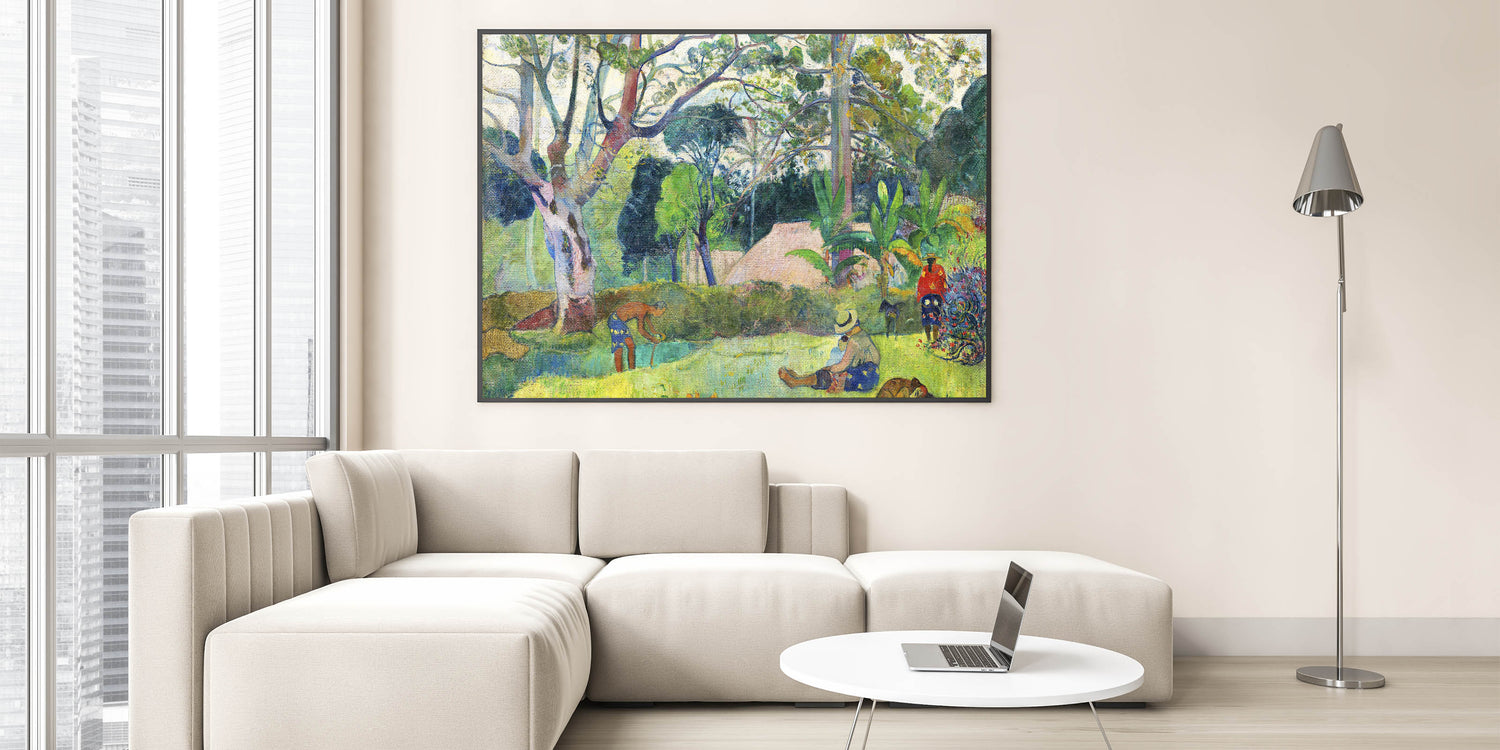 - Art Style: Post-Impressionist artwork by the iconic Paul Gauguin.