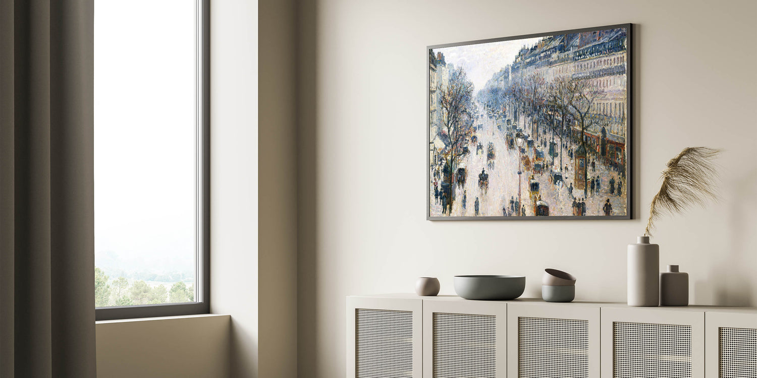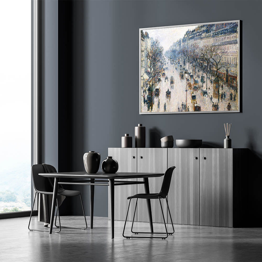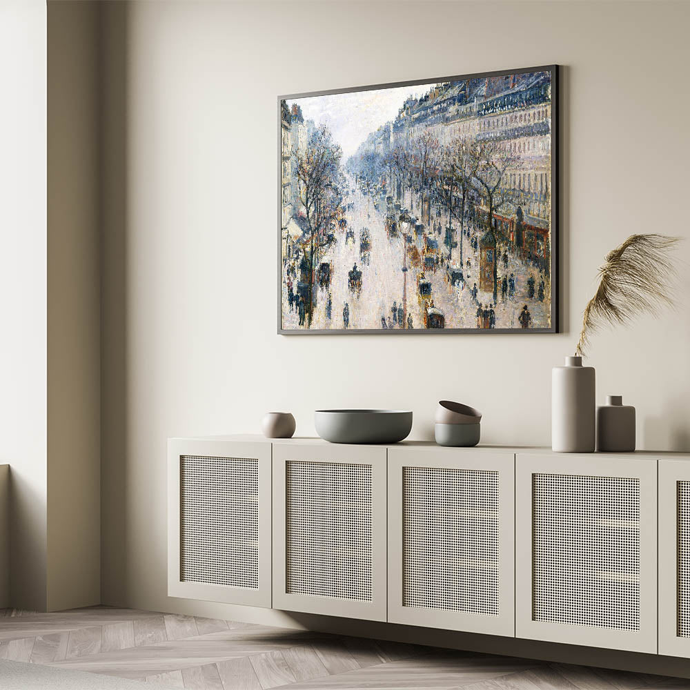 This painting is perfect for those who appreciate the elegance of historical cityscapes and the charm of Impressionist art. Whether displayed in a living room, office, or study, Pissarro’s Boulevard Montmartre brings a touch of Parisian sophistication to your space.