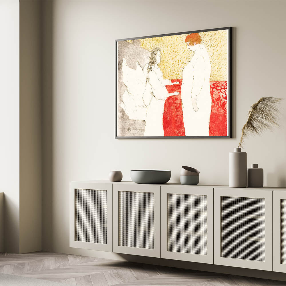 Introduce a touch of elegance and intimacy to your decor with Henri de Toulouse-Lautrec’s "Woman in Bed, Profile (Femme au lit, profil)". This Impressionist-inspired lithograph captures a quiet moment of contemplation, emphasizing simplicity, emotional depth, and Lautrec’s masterful use of color and line. The soft yellows, warm reds, and delicate details evoke a sense of serenity, making it an exceptional addition to your art collection.