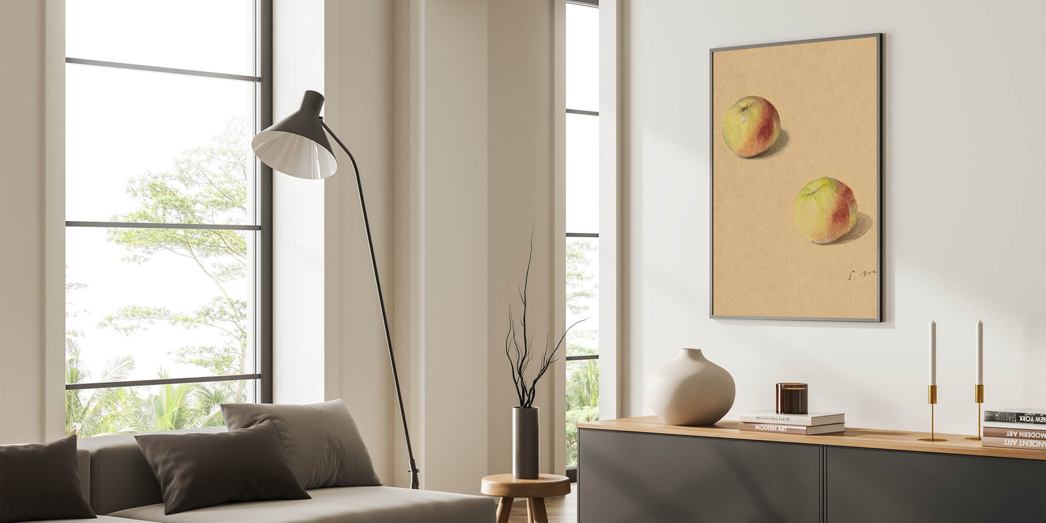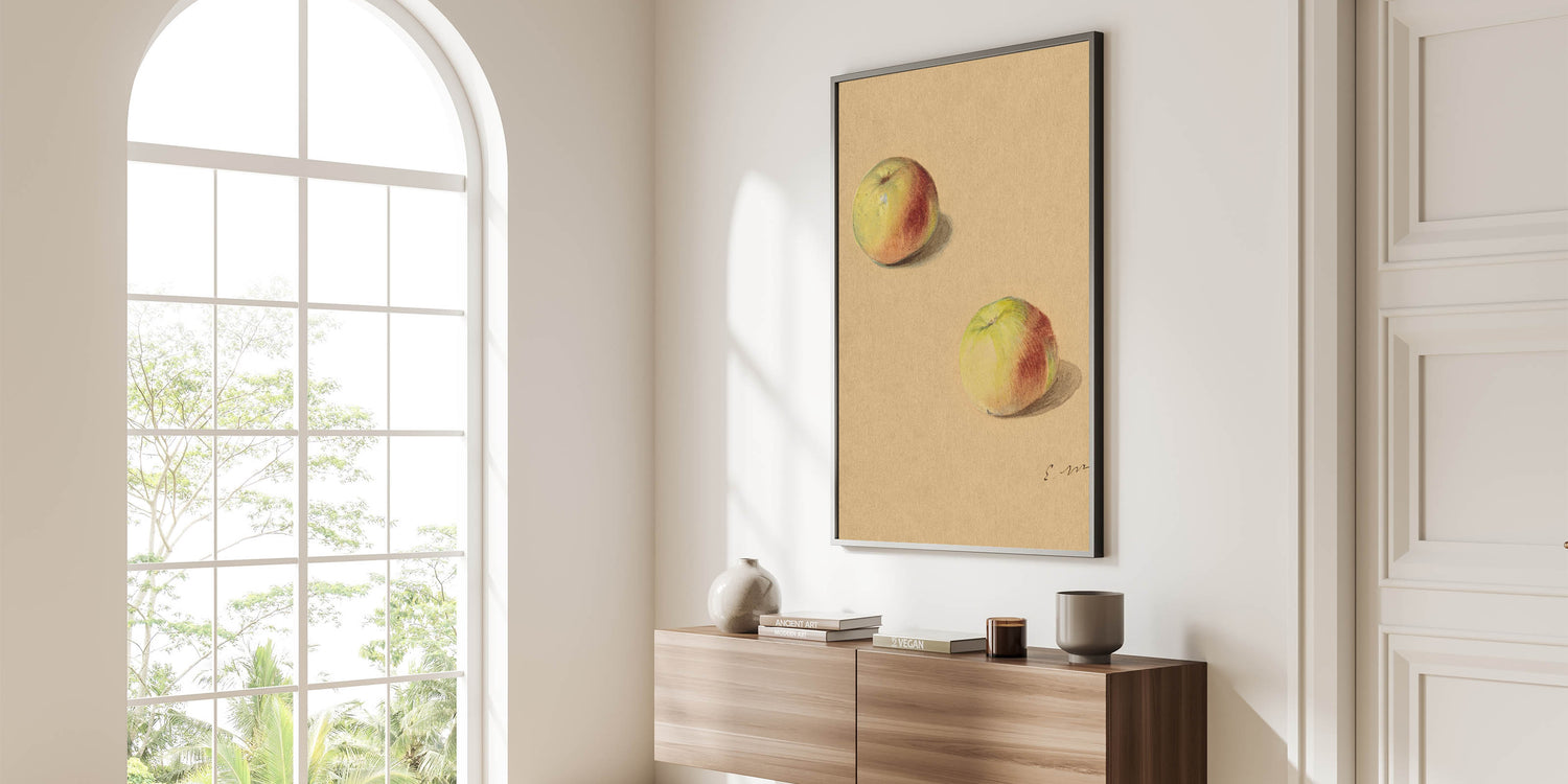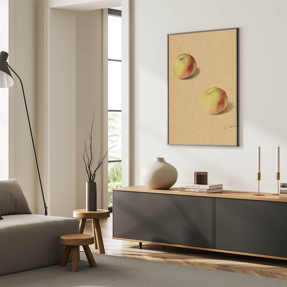 "Two Apples" is ideal for adding a touch of Impressionist style decor to your kitchen, dining room, or living space. Its warm tones and soft shading reflect the essence of Impressionist oil paintings, creating a soothing yet stylish atmosphere in your home. Explore this piece and more in our Impressionist wall art collection.