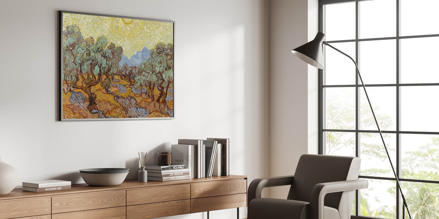 Van Gogh Olive Trees Under Sun - Impressionist Wall Art Print