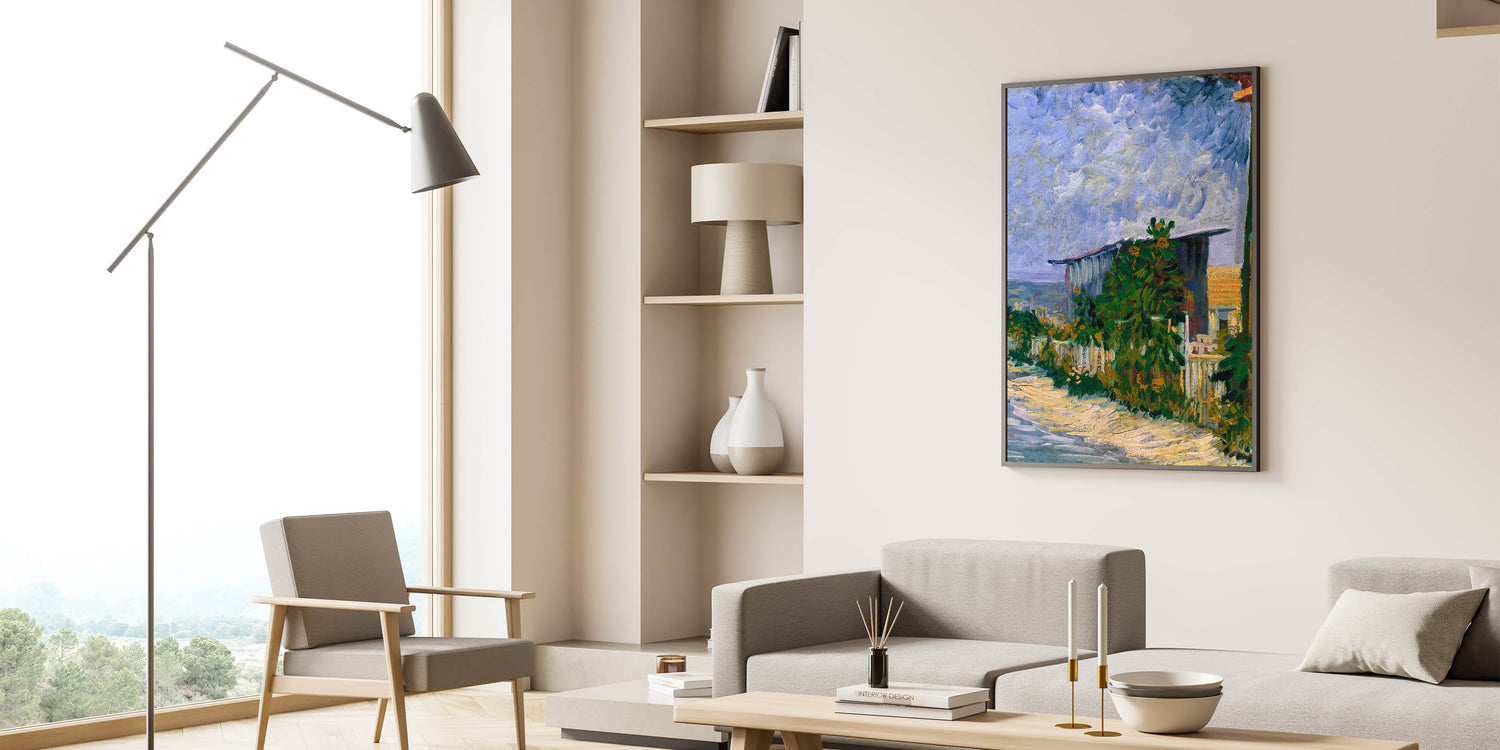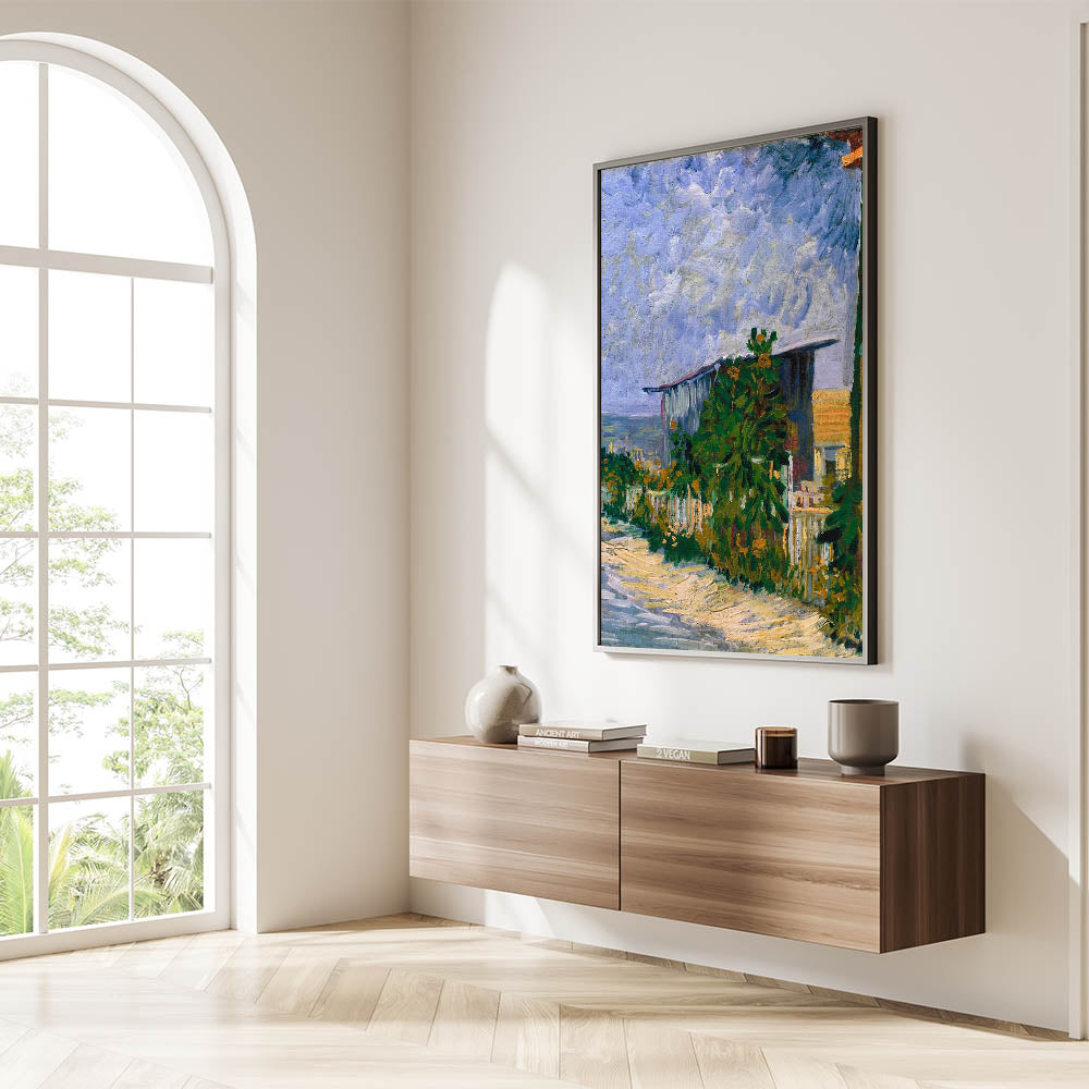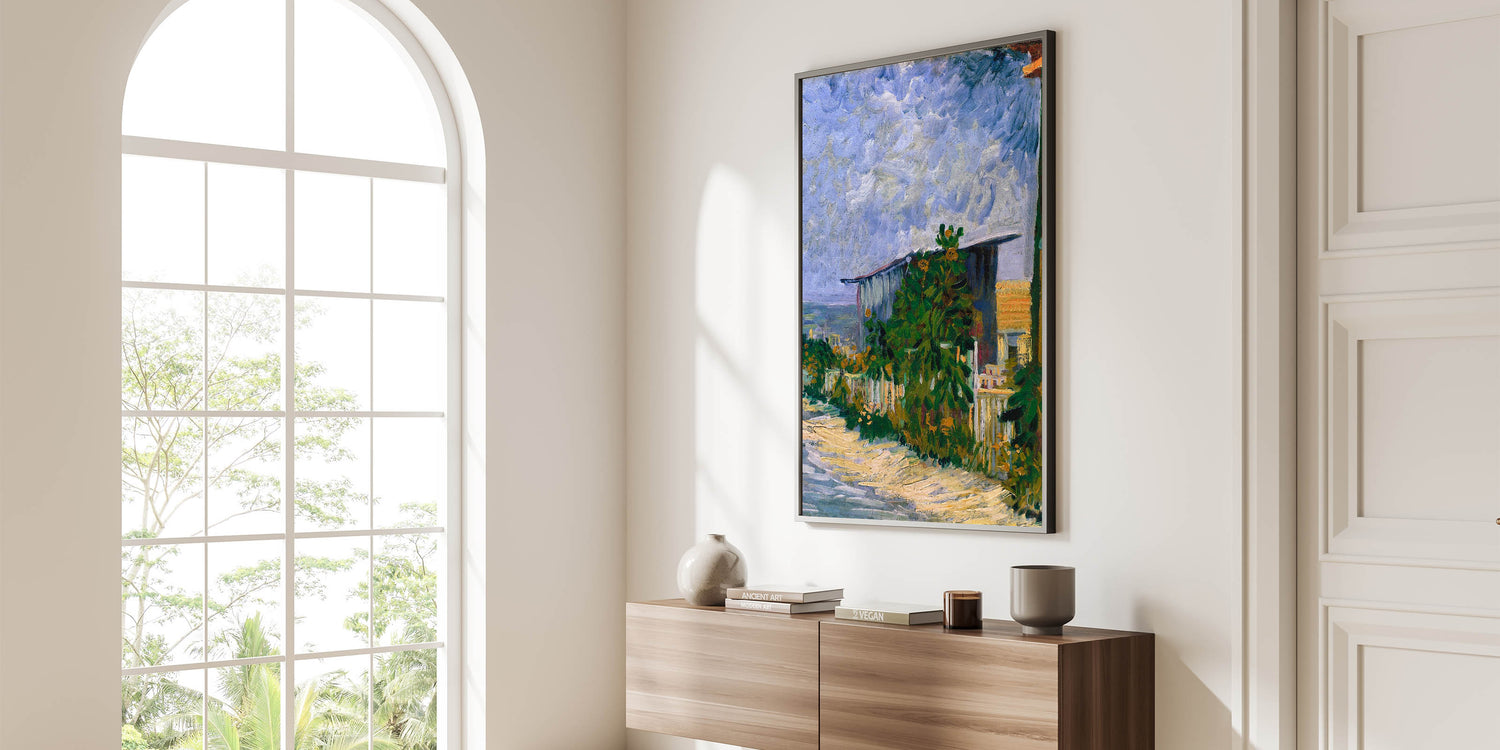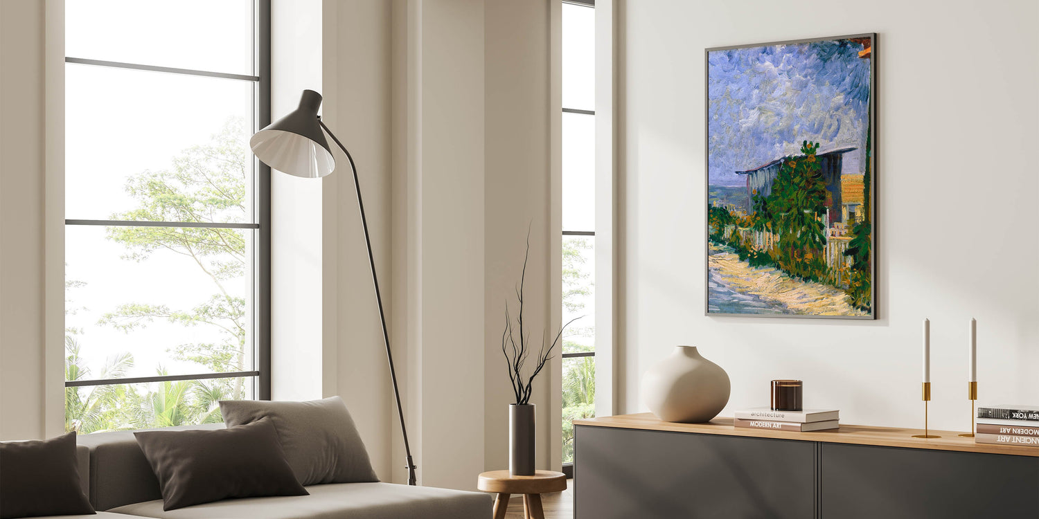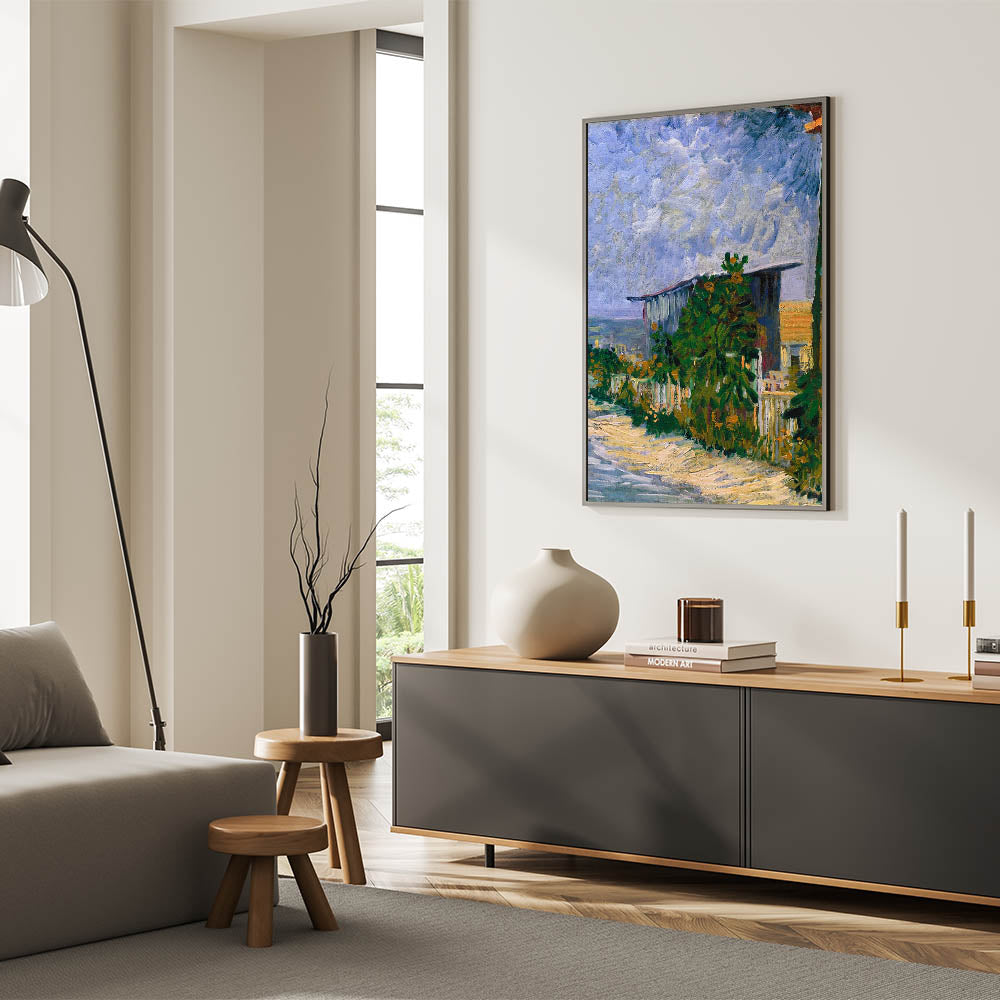 Infuse your space with the beauty of Impressionist art through Vincent van Gogh’s 1887 painting, Shelter on Montmartre. This vibrant piece captures the rustic charm of the Montmartre countryside, with dynamic brushstrokes depicting a serene shelter surrounded by lush greenery and a dramatic sky. The interplay of vivid greens and soft blues brings the landscape to life, reflecting Van Gogh’s mastery of color and texture.
