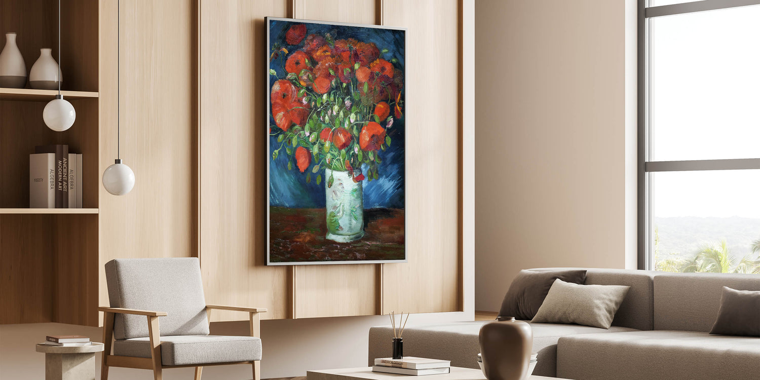 Celebrate Van Gogh’s iconic artistry and the timeless appeal of Impressionist still-lifes with this stunning piece. Whether displayed in a living room, kitchen, or office, Vase with Poppies is sure to add warmth and sophistication to your decor.