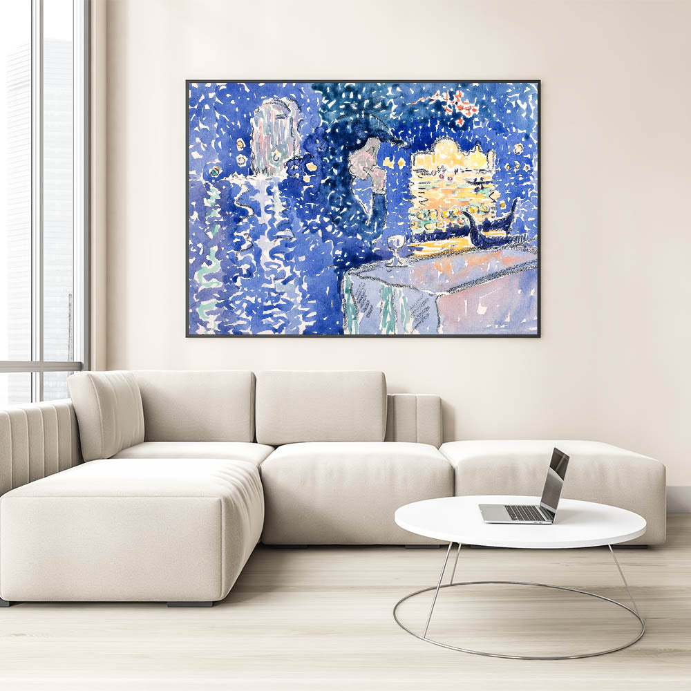 Illuminate your walls with the enchanting glow of this Venice Night Festival Impressionist wall art. Depicting the Festival of the Redeemer, this artwork captures the shimmering reflections of light on water, vibrant gondolas, and a magical evening sky. The rich palette of deep blues, soft lavender, and golden yellows brings a dreamlike quality to this piece, making it a true masterpiece of Impressionist style decor.
