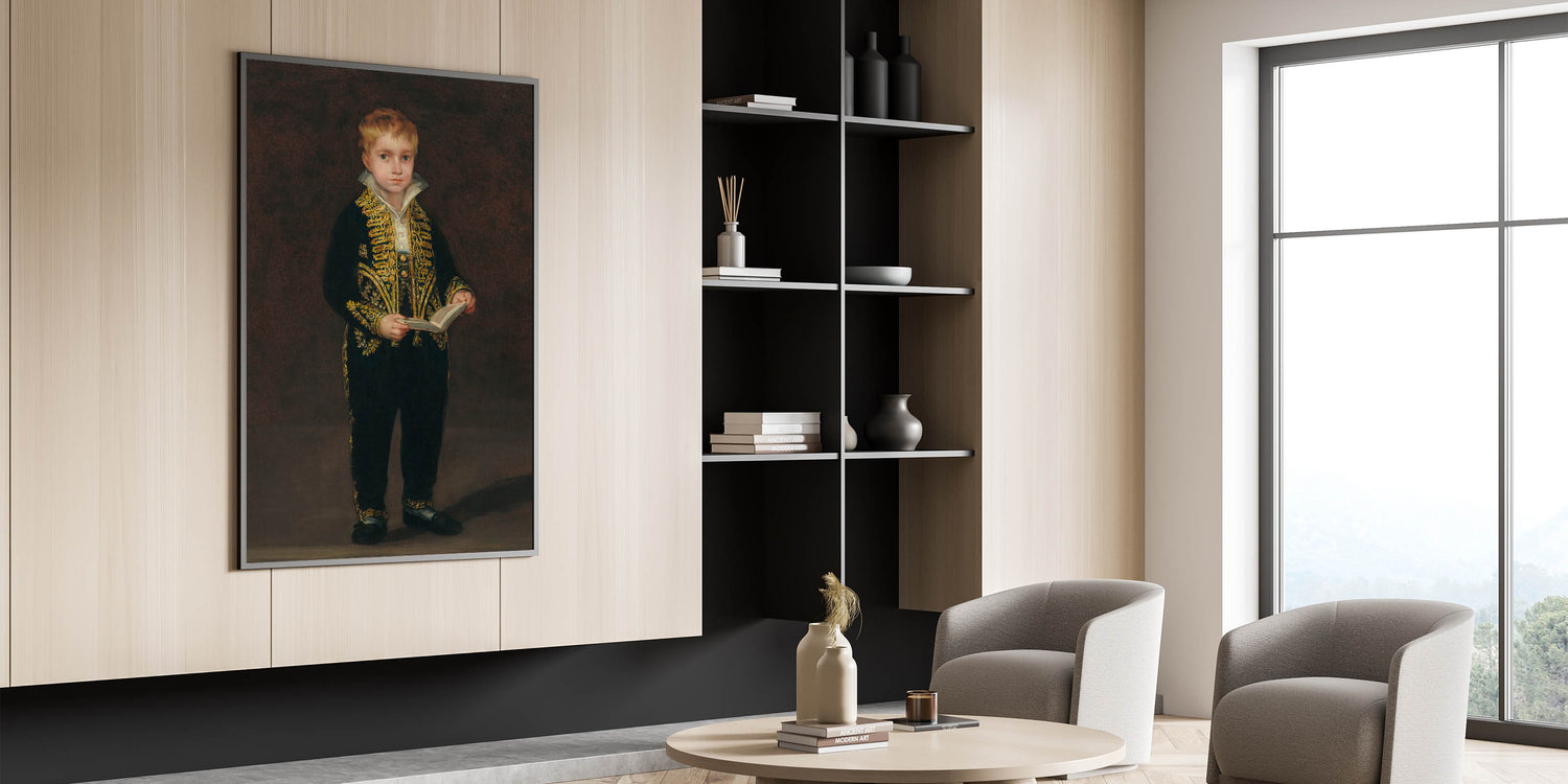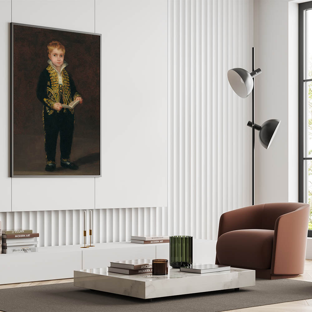 Introduce timeless elegance to your home with Victor Guye by Francisco Goya, a masterpiece of the Romanticism era. This stunning artwork showcases the emotional depth and historic significance of Romanticism style wall art, making it perfect for collectors and art enthusiasts. Goya's intricate detailing in the young boy's ceremonial attire reflects the era's fascination with cultural heritage and individual expression.
