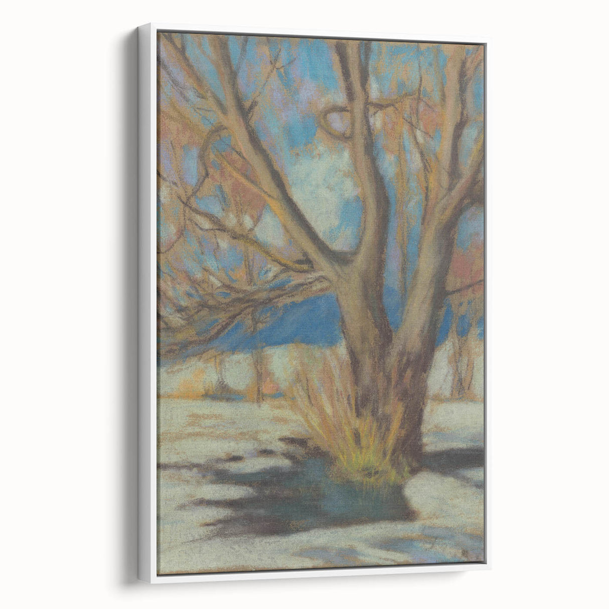 Celebrate the serene beauty of winter with Winter's Essence: Study of a Bare Tree by Zolo Palugyay. This evocative artwork captures the stark elegance of a lone tree standing against a vivid blue sky and subtle snowy landscape. Crafted with masterful strokes, it perfectly blends vibrant hues and muted tones, creating a captivating balance of warmth and chill. Ideal for nature lovers and art enthusiasts, this piece serves as a striking focal point for modern and traditional interiors alike.